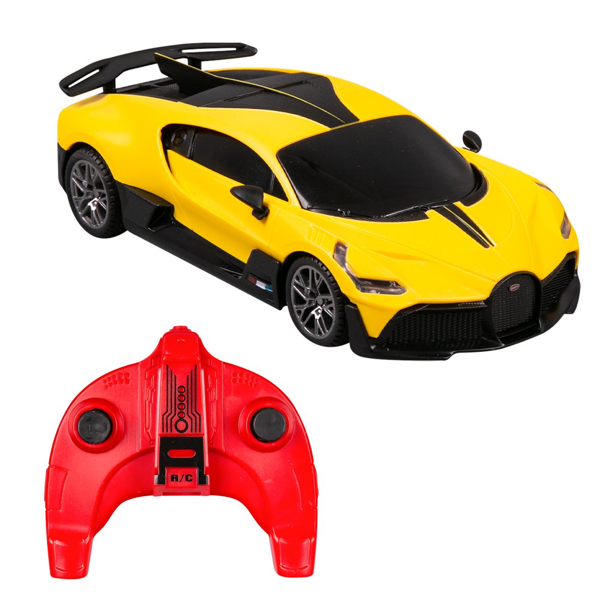 Машинка на радиоуправлении Bugatti Divo, желтый 1:2412 990Купить!тг.Marwin.kzДоставка: из АлматыПожаловатьсяРадиоуправляемая игрушка выполнена в виде масштабной модели реального автомобиля Bugatti Divo. Модель превосходно детализирована: форма кузова, выполненная плавными линиями, фары, зеркала заднего вида еще→и другие ключевые элементы в точности как у настоящего прототипа, только пропорционально уменьшены в размере. Окошки транспорта тонированные. Колеса машины с рельефными шинами черного цвета, что обеспечивает хорошее сцепление с трассой. Управлять движением автомобиля ребенок сможет дистанционно с помощью пульта с двумя джойстиками: левый отвечает за направление вперед-назад, а правый – направление вправо-влево. Пульт работает на частоте 27 МГц. При движении у машинки загораются передние фары. Боков…