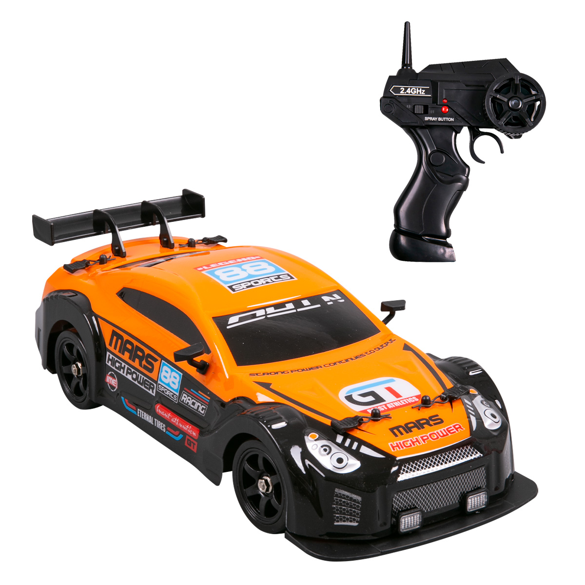 Машинка на радиоуправлении дрифт, оранжевый 1:1622 090Купить!тг.Marwin.kzДоставка: из АлматыПожаловатьсяРадиоуправляемая полноприводная машина привлечет внимание своей скоростью и маневренностью. Пульт дистанционного управления с пистолетной рукояткой делает управление более увлекательным. На пульте и еще→меется кнопка питания с индикатором, отвечающая за включения-выключения машинки. Кнопка «spray button» активирует пар и его подсветку из выхлопной трубы. Для появления пара необходимо заполнить специальный резервуар, который находится под задним бампером машинки с помощью пипетки (в комплекте). Движение происходит за счет курка, который контролирует движение вперед-назад, и круглого джойстика, регулирующий повороты вправо-влево. Частота 2,4 ГГц. Дальность действия до 35 метров. При движении у машинк…