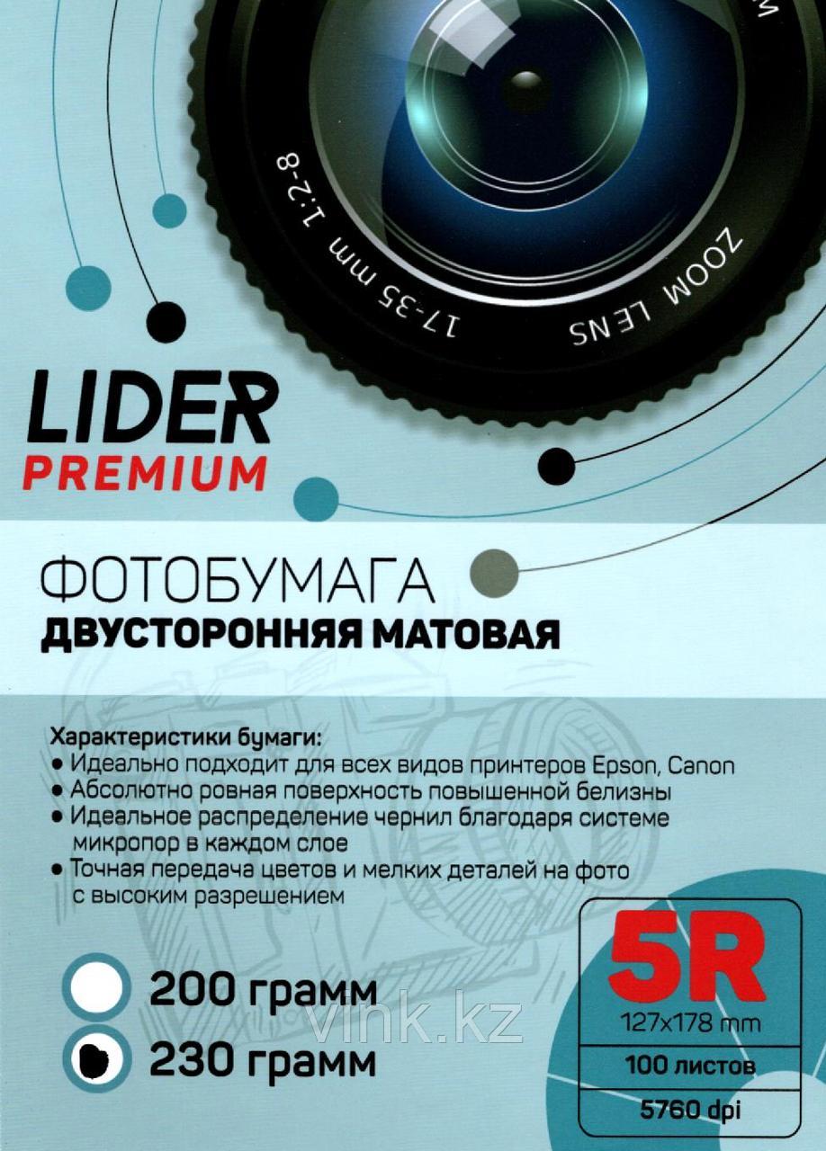 Фотобумага матовая 230гр. 5R 100л 2-сторонняя LIDER900Купить!тг. Маркетплейс: Satu.kz Интернет каталог Vink.kz Доставка: по Казахстану ПожаловатьсяДвухсторонняя матовая, 5R, 230 гр, LIDER Данная фотобумага, идеально совместима со всеми принтерами HP, Epson, Canon. В упаковке 100 листов.