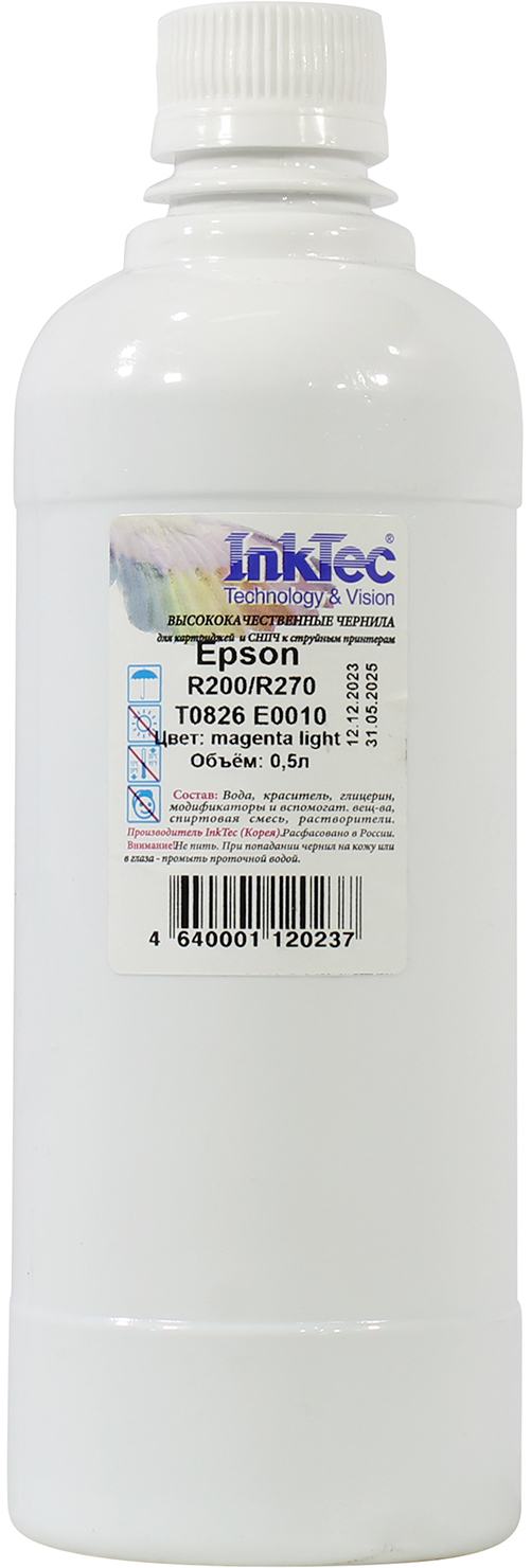 Чернила InkTec 1507060155U светло-пурпурныйЧернила InkTec E0010 Light Magenta объёмом 0,5 л — это качественный расходный материал, предназначенный для заправки картриджа T0826 или систем чернил принтеров Epson серии R200 / R270 и аналогичных моделей. Светлый пурпурный компонент (ML) используется для печати плавных переходов и мягких оттенков в фотографиях, дизайне и профессиональной полиграфии. 11 675 тг.Greenprice.kzДоставка: из АлматыПожаловатьсяКупить!