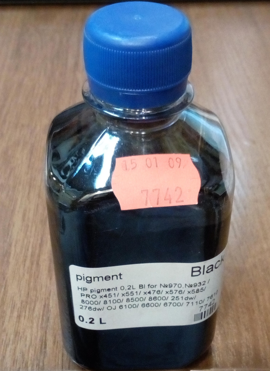 — чернила на основе пигментов — твердых красителей, которые в виде микрочастиц разведены в жидком наполнителе до состояния суспензии. По сравнению с более популярными водорастворимыми чернилами такие составы заметно дороже, при этом готовое изображение может получиться несколько менее ярким (по сравнению с печатью водным красителем на том же принтере). С другой стороны, пигментные чернила дают более высокую детализацию, что особенно важно для фотопечати. Кроме того, готовые изображения лучше противостоят влаге и не так быстро выцветают на ярком свете — этой устойчивости недостаточно для использования на улице, однако в помещении такие отпечатки могут храниться очень долго.Выводить