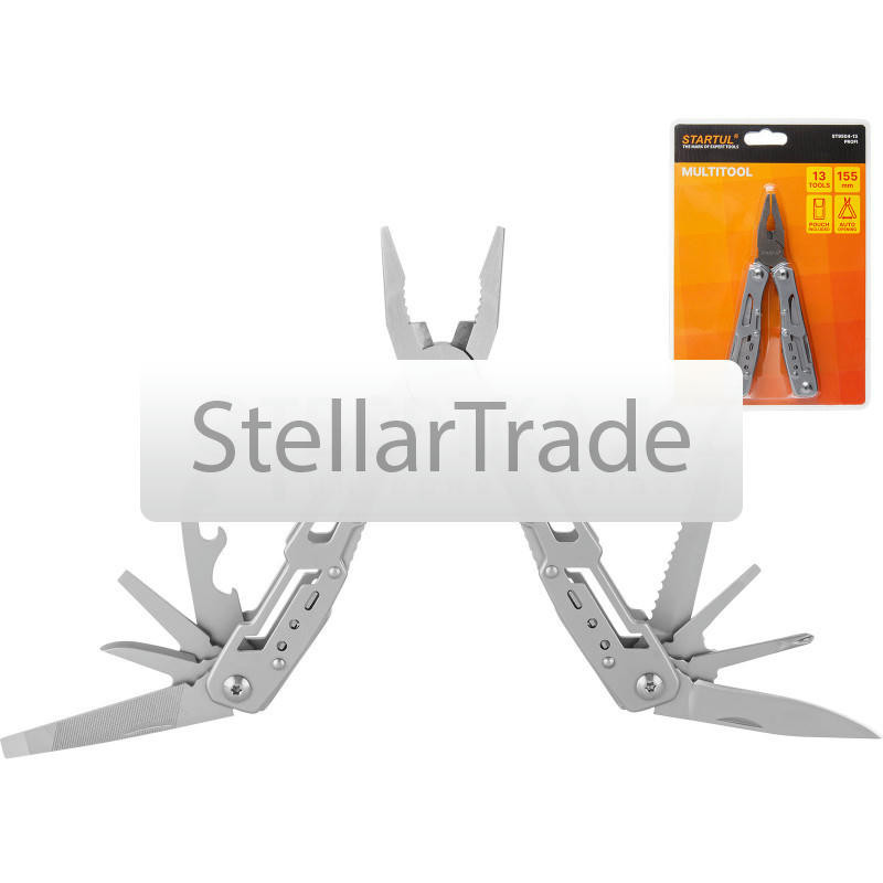 | Назначение: это компактный многофункциональный инструмент, который может применяться для выполнения широкого набора функций. 13 функций: 1) тонкогубцы 2) плоскогубцы 3) кусачки для проводов 4) нож 5) отвертка PH 6) 3 плоские отвертки 3мм, 4,5мм, 6,5мм 7) пила 8) напильник двусторонний 9) плоское лезвие-пробойник 10) консервный нож 11) открывалка для бутылок, Общая длина, см: 15,7, | |