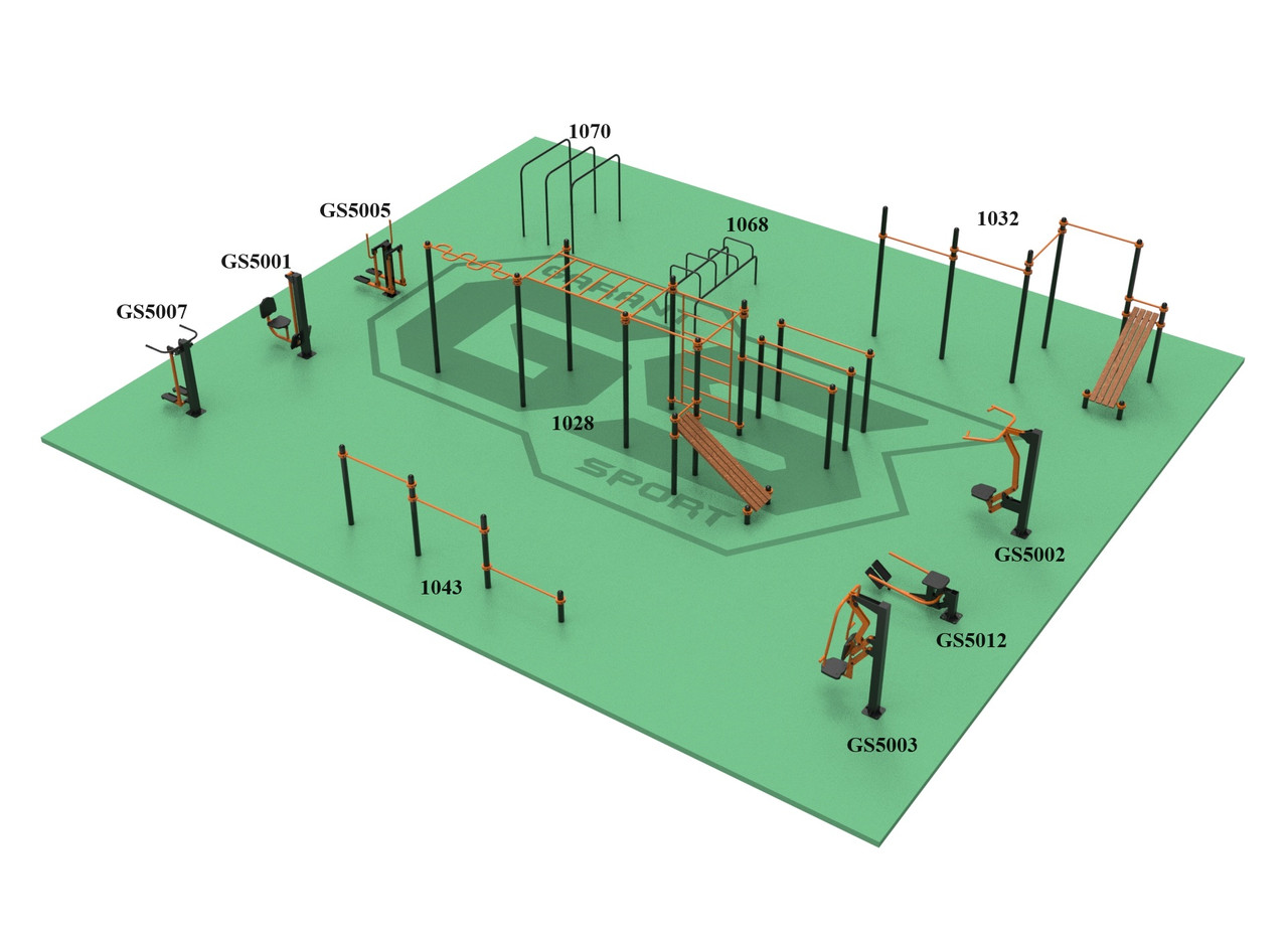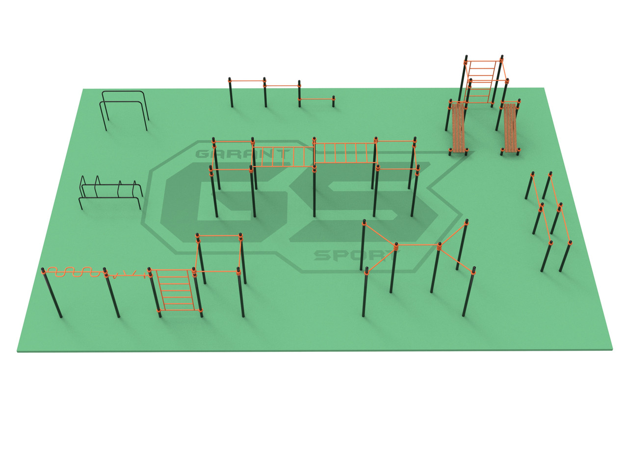 Воркаут площадка GS-30224 076 000Купить!тг. Маркетплейс: Satu.kz ТОО "Garant Sport" Доставка: по Казахстану ПожаловатьсяРазмер площадки: 12 х 17 м. = 204 м. кв. Вес/объем оборудования: 1319кг Кол-во оборудования, шт.: 9