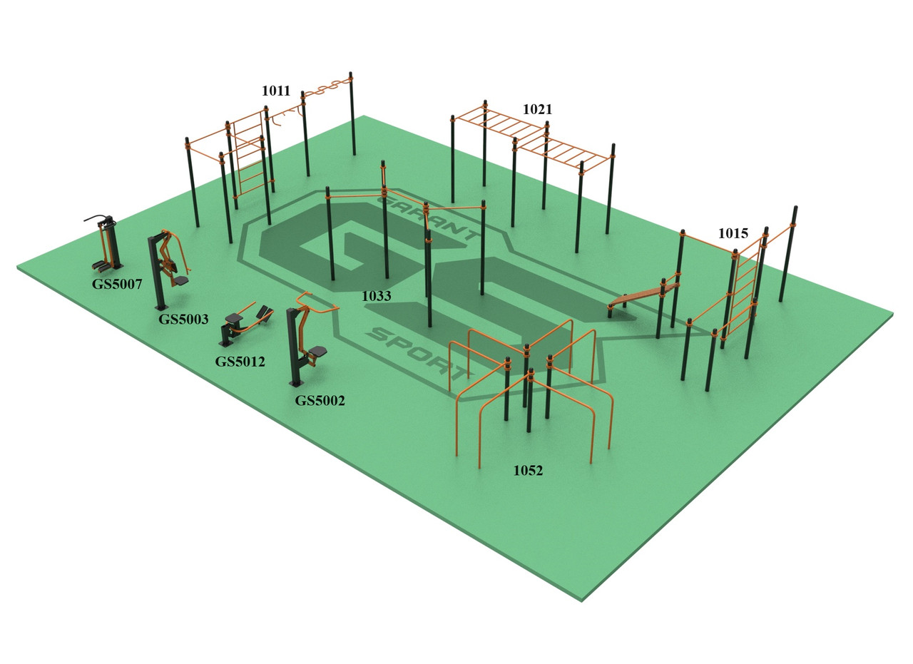 Воркаут площадка GS-30152 042 000Купить!тг. Маркетплейс: Satu.kz ТОО "Garant Sport" Доставка: по Казахстану ПожаловатьсяРазмер площадки: 15 м.Ф = 177 м. кв. Вес/объем оборудования: 895 кг. / 5 м.куб. Кол-во оборудования, шт.: 5
