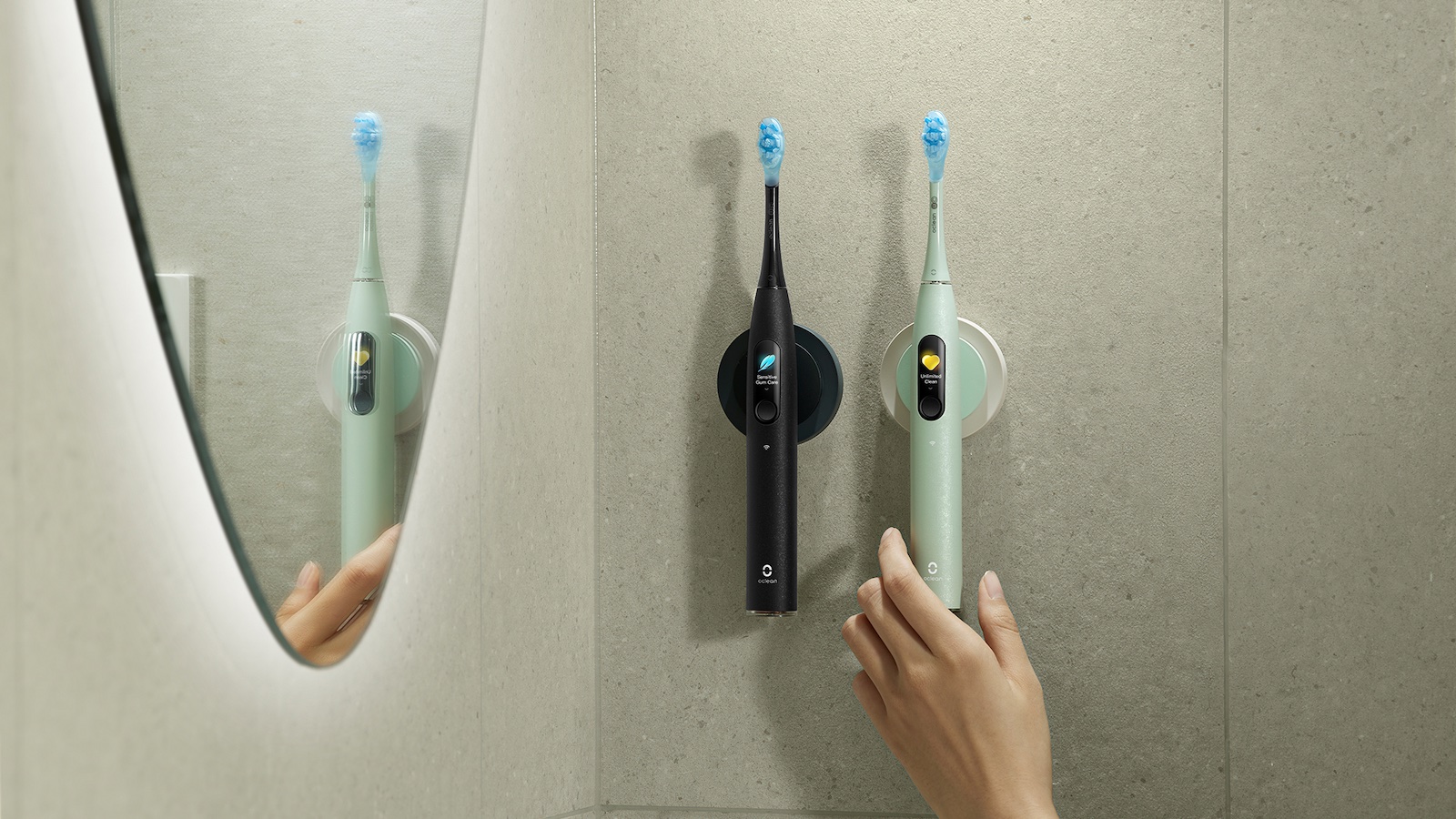 Серия Oclean X представляет собой флагманскую линейку умных звуковых щеток, главной отличительной чертой которых является наличие цветного сенсорного дисплея прямо на рукоятке. Эти устройства ориентированы на глубокую аналитику гигиены без обязательного использования смартфона: экран отображает «слепые зоны» (участки, которые вы пропустили), оценку качества чистки и позволяет менять настройки режимов прямо в процессе. Все щетки серии оснащены мощными бесщеточными двигателями на магнитной подвеске с частотой до 84000 движений в минуту, что обеспечивает профессиональный уровень удаления налета. Также в число характеристик входят насадки с качественной щетиной DuPont Tynex, датчик нажима, который предотвращает чрезмерное давление на десны, магнитный настенный держатель и возможность подключения к смартфону — приложение Oclean предоставляет еще более детальные отчеты и позволяет создавать собственные программы чистки, исходя из состояния ваших зубов и наличия брекетов или коронок.