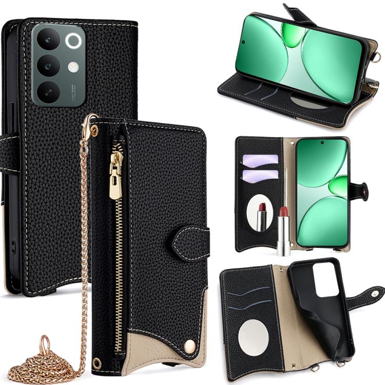 For Realme C85 5G Crossbody Chain Fishtail Litchi Leather Phone Case(Black)2 829Купить!тг.Sunsky-online.comДоставка: из КитаяПожаловаться1. Material: TPU bottom, PU leather wallet bag feels delicate, beautiful and fashionable appearance.2. Practical Card Wallet Function: Card slots and cash compartment to store your credit cards, cash, еще→or small notes for daily needed.3. Convenient Stand: A stable stand for hands-free video calls, reading, or watching movies, freeing up your hands and enhancing work efficiency.4. Protection: It adequately protects devices from the normal scratches, dirt, tear and wear.5. Convenience: All buttons and ports can be accessed, charged, and connected to the headphone cable without removing the phone case.6. Crossbody Metal Chain Design: Equipped with a metal chain lanyard that can be crossed
