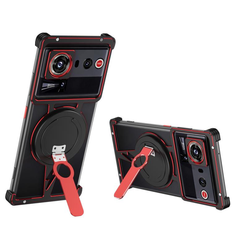 For ZTE nubia Red Magic 11 Pro / 11 Pro+ Mechanical Arm Borderless MagSafe Holder Metal Phone Case(Black Red)5 459Купить!тг.Sunsky-online.comДоставка: из КитаяПожаловаться1. Alloy material, precision processing, spliced by screws and detachable.2. The hollow back panel greatly increases the heat dissipation area and prevents the phone from getting hot after long-term u еще→se.3. Four corner reinforced structure, embedded with shock-absorbing sponge, effectively resisting impact.4. 360 degree rotating ring holder provides stable support for the phone.5. Powerful magnetization, supports MagSafe wireless charging, no need to remove phone case.Note: The actual product is subject to the title model, and the model machine in the picture is for reference only.