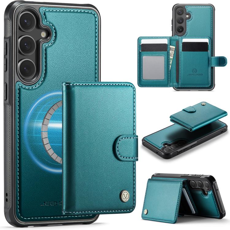 For Samsung Galaxy S23 FE 5G JEEHOOD J09 Buckle Card Bag MagSafe Magnetic Style RFID Leather Phone Case(Green)2 320Купить!тг.Sunsky-online.comДоставка: из КитаяПожаловаться1. Made of PC+TPU bottom shell material, wear-resistant and durable.2. MagSafe ring is added to the bottom shell to accurately locate the charger and fits in one go3. Fully protect the device from nor еще→mal scratches, dirt, tearing and wear.4. The functional card holder has 1 photo frame + 3 card slots + 2 wallet slots built in, which is easy to use.5. RFID shielding prevents others from maliciously reading and stealing your personal information.6. The suction-type detachable card holder design, magnetic fit, is stable and not easy to fall.