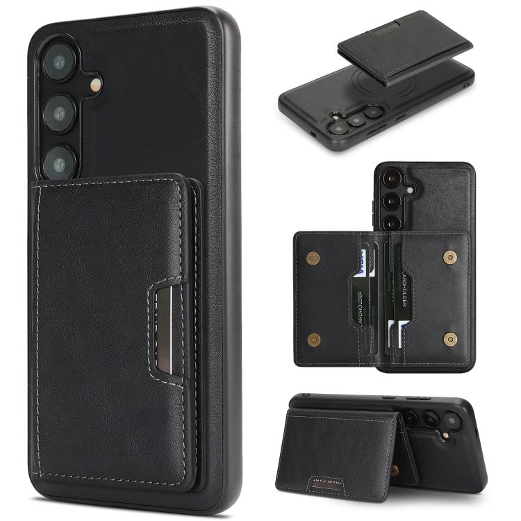 For Samsung Galaxy S23+ 5G Kalebol Strong MagSafe Magnetic Two-Fold Card Bag Leather Phone Case(Black)2 236Купить!тг.Sunsky-online.comДоставка: из КитаяПожаловаться1. Minimalist magnetic two fold ring magnetic card case, supports Magsafe accessories and wireless charger2. Multiple card slots for ID card, credit card, driver license, cash, etc.3. Multi-functional еще→and stylish leather case, both the case and the card case are made of high performance N52 ring magnet, which can be disassembled and assembled by strong magnetism.4. Camera and screen protection, protect your phone from drops and shocks.5. Can be used as a stand, free to adjust the angle to find a good viewing angle6. Anti-slip PU leather Magsafe wallet, the right size pockets can hold the cards tightly, dont worry about the cards slipping out even if you shake it violently.