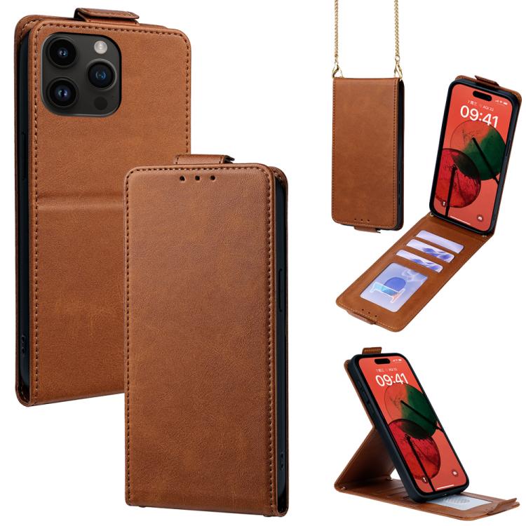 For iPhone 14 Pro Max Vertical Flip Cover Solid Color Vegan Leather Phone Case with Crossbody Chain(Brown)1 796Купить!тг.Sunsky-online.comДоставка: из КитаяПожаловаться1. Classic vertical flip cover design for easy access and full protection of your phone.2. Made of Vegan Leather (PU) and TPU materials, which are wear-resistant and durable. 3. Equipped with 2 holes, еще→allowing you to attach a metal chain and instantly convert it into a crossbody phone case.4. Clean and simple solid color design, suitable for daily use, work, or casual outings.5. Features 3 card slots, perfect for cards, IDs, or photos.6. Easy push card slot design allows quick and easy card removal.Note: The actual product is subject to the model specified in the title. The model shown in the images is for reference only.