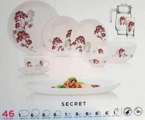 Столовый сервиз Luminarc Secret (46 предметов) P033350 490Купить!тг.Starshop.kzДоставка: из АлматыПожаловатьсяПосуда Luminarc объединяет в себе современный дизайн и традиционное европейское качество. Изделия изготовлены из высококачественного ударопрочного стекла белого цвета в округлой форме с невероятно к еще→расивым узором, что смотрится очень оригинально и стильно. Сервизы представленных моделей шикарно подойдут для сервировки праздничного застолья. Столовая посуда Luminarc