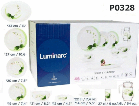 Столовый сервиз Luminarc White Orchid (46 предметов) N3442-P032850 490Купить!тг.Starshop.kzДоставка: из АлматыПожаловатьсяВся столовая посуда Luminarc изготавливается из закаленного стекла, в процессе изготовления упрочняясь более чем в три раза по сравнению со стандартным стеклом. Так же к плюсам данного материала мож еще→но отнести абсолютно гладкую поверхность, препятствующую проникновению бактерий и посторонних запахов в посуду. Посуду Luminarc можно использовать в микроволновой печи, а так же мыть в