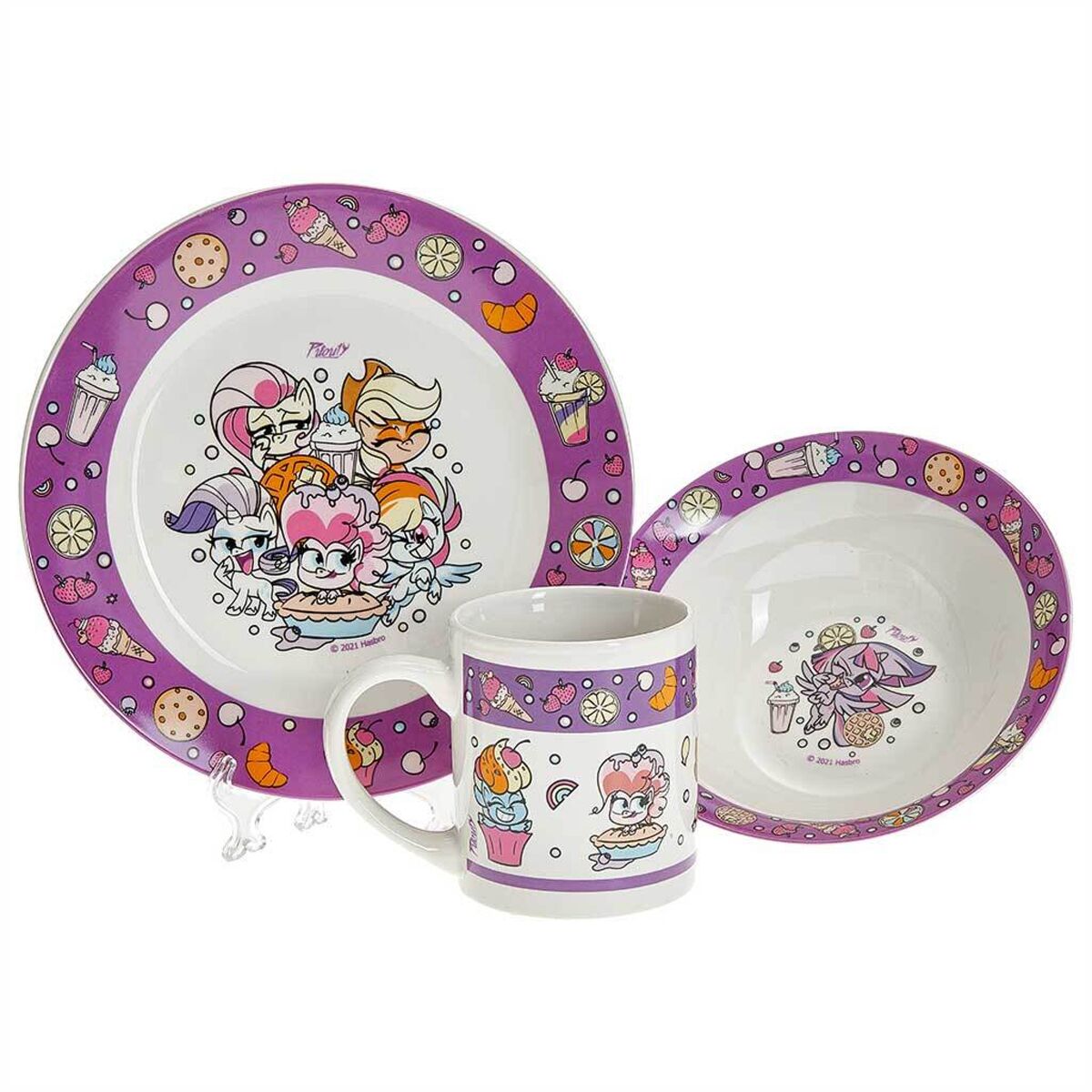 Набор посуды из 3-х предметов "Мой маленький пони"6 990Купить!тг.Marwin.kzДоставка: из АлматыПожаловатьсяНабор детской посуды из высококачественного фарфора с изображениями персонажей популярного мультфильма. Серия: Мой маленький пони. Дружба. Можно мыть в посудомоечной машине и использовать в микрово еще→лновой печи. Не использовать в духовке и на открытом огне. Упаковка: подарочная коробка В наборе 3 предмета: - кружка 240 мл - тарелка 190 мм - миска 152 мм