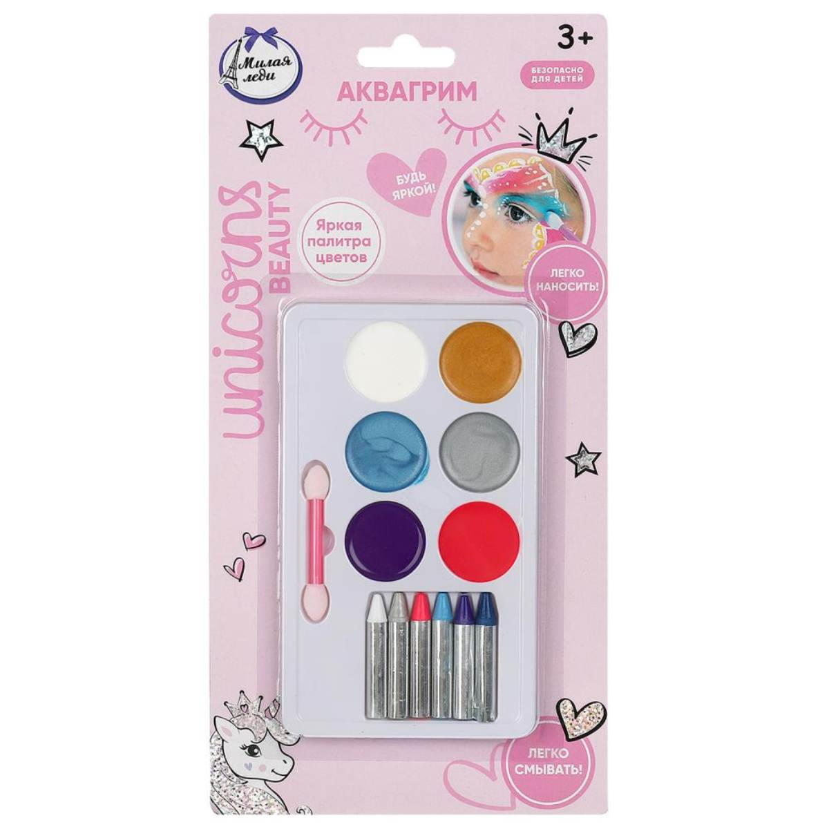 Аквагрим палетка с карандашами МИЛАЯ ЛЕДИ4 090Купить!тг.Marwin.kzДоставка: из АлматыПожаловатьсяАквагрим - палетка с карандашами - это яркая палитра красок для создания волшебного образа: - палетка с аквагримом 6-ти цветов: розовый, белый, серебряный, голубой, фиолетовый, золотой - 6 ка еще→рандашей в комплекте: розовый, голубой, белый, серебряный, синий, фиолетовый - двусторонний аппликатор в комплекте - цвета можно комбинировать и смешивать между собой - легко наносить - легко смывать Аквагрим - это настоящая находка для маленьких фантазёров, которая поможет превратиться им в любимых сказочных персонажей. Широкая цветовая гамма обеспечит создание красочного и запоминающегося образа на детских праздниках и просто дома, чтобы окунуться в мир удивительных фантазий. Удобна…