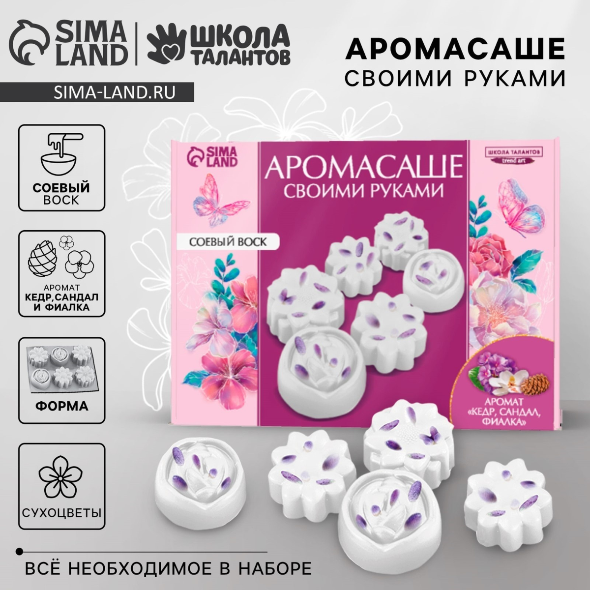 Набор для творчества Аромасаше из воска "Цветы с сухоцветами"2 095Купить!тг.Marwin.kzДоставка: из АлматыПожаловатьсяАроматическое саше - эстетичный и экологичный ароматизатор для одежды и небольших помещений. Саше придаст легкий и ненавязчивый аромат. В набор входит: Соевый воск Пластиковая форма Ароматизат еще→ор «Кедр Сандал Фиалка» Мешочек из органзы Сухоцветы Хлопковый фитиль 20 см Как сделать аромасаше: Положите 50 г воска в ёмкость, которую можно нагревать. Поместить её в кастрюлю с