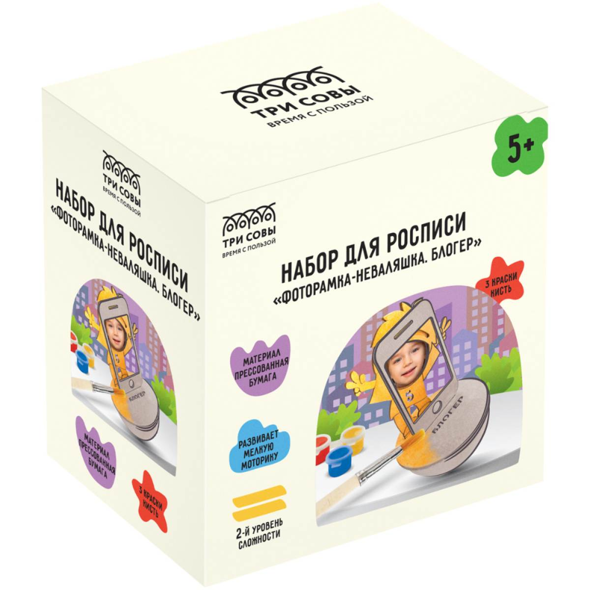 Набор для росписи ТРИ СОВЫ "Фоторамка-Неваляшка. Блогер", с красками и кистью3 190Купить!тг.Marwin.kzДоставка: из АлматыПожаловатьсяРоспись фигурок «ТРИ СОВЫ» – очень простое, увлекательное и полезное занятие для детей, с помощью которого малыш развивает фантазию, точность и аккуратность. Набор для росписи из прессованной бумаги еще→- это отличная возможность для любого непоседы погрузиться в творческий процесс, который научит фокусировать внимание и насладиться результатом своего труда. Во время росписи дети будут использовать кисточку и краски, трудиться над деталями, при этом развивая мелкую моторику рук, чувство цвета и воображение. Готовую фигурку можно использовать в игре или сделать уникальный подарок со своим фото. Состав набора: - фигурка из прессованной бумажной массы, - картонный контур, - краска акрил …