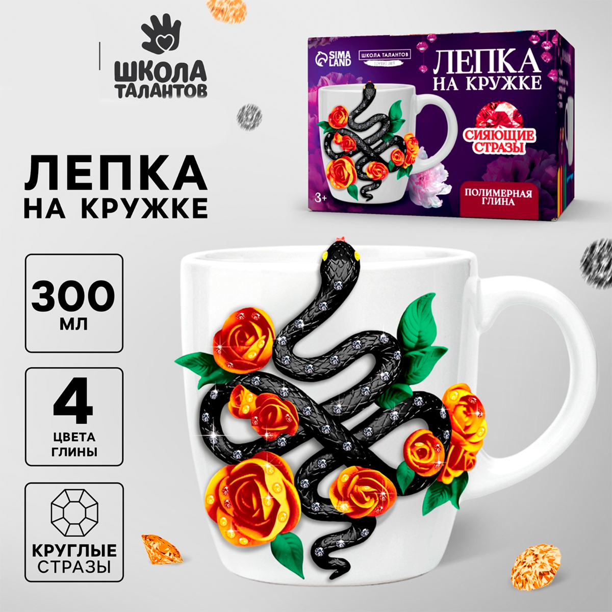 Набор для декора кружки полимерной глиной со стразами "Лепка на кружке" Змея с цветами2 395Купить!тг.Marwin.kzДоставка: из АлматыПожаловатьсяС этим набором вы сможете создать оригинальную кружку с объёмным изображением из полимерной глины. Как декорировать кружку Следуйте вложенному мастер-классу, и у вас получится оригинальное издел еще→ие, которое дополнит праздничную атмосферу или станет трогательным подарком для близкого человека. После того как закончите лепить, необходимо запечь изделие в духовом шкафу при температуре 130 градусов в течение 20-30 минут. Посуду с декоративными элементами рекомендуется мыть вручную с использованием щадящих средств и мягкой губки. Комплектация полимерная глина; стека; стразы; кружка. Характеристики: - Размер упаковки: 11,3 х 8,7 х 8,7 см