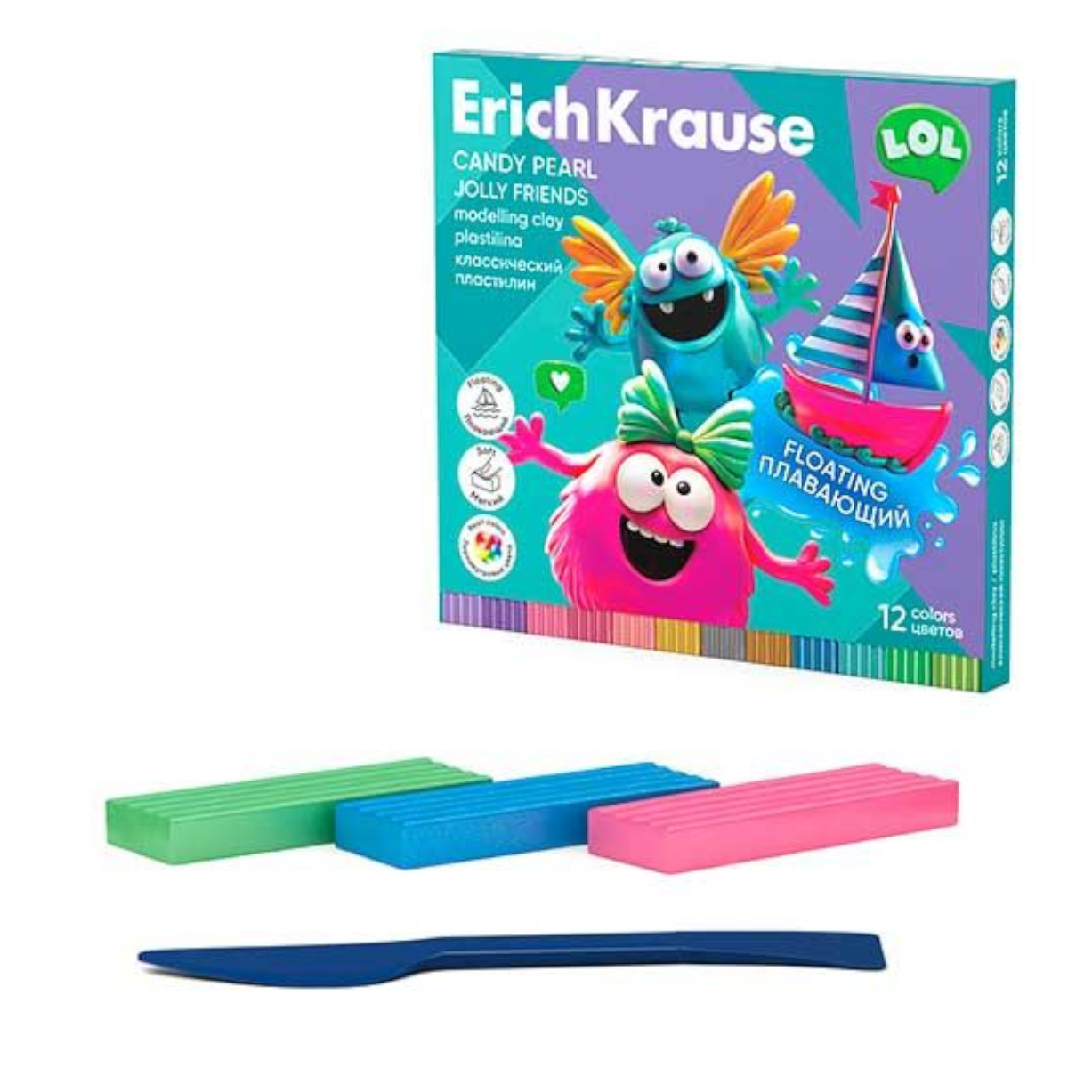 Пластилин классический плавающий ErichKrause Jolly Friends Candy Pearl 12 цветов со стеком, 216 г2 450Купить!тг.Marwin.kzДоставка: из АлматыПожаловатьсяКлассический плавающий пластилин ErichKrause Jolly Friends Candy Pearl — яркий набор из 12 перламутровых цветов общим весом 216 г. Благодаря легкой и воздушной структуре пластилин держится на поверх еще→ности воды, что делает творчество еще интереснее и разнообразнее. Материал мягкий, эластичный, легко разминается и подходит для лепки как крупных фигур, так и мелких деталей. Перламутровый эффект придает поделкам выразительность. В комплект входит удобный стек для моделирования. Пластилин не пачкает руки, безопасен и идеален для занятий дома, в саду и творческих студиях.