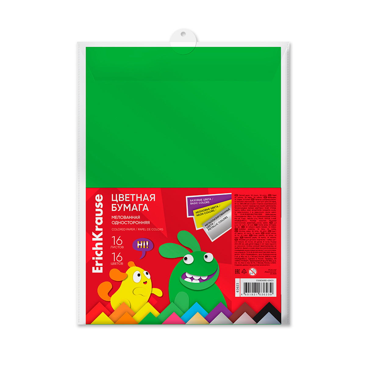 Цветная бумага мелованная одност. в пласт.папке ErichKrause, Jolly Friends, А4, 16л., 16цв.1 550Купить!тг.Marwin.kzДоставка: из АлматыПожаловатьсяЦветная бумага мелованная ErichKrause Jolly Friends в пластиковой папке — идеальный выбор для создания ярких поделок, открыток и других творческих проектов. В набор входит 16 листов бумаги формата еще→A4 различных цветов, что даёт возможность использовать её для рисования, аппликаций и других видов творчества. Односторонняя мелованная поверхность позволяет работать с разными материалами, а пластиковая папка защищает бумагу от повреждений и удобно хранит её. В комплекте: цветная бумага — 16 листов. Характеристики: - Формат: A4 - Цветов: 16 - Количество листов: 16 - Материал: бумага, пластик