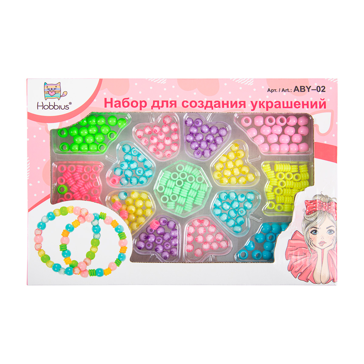 — наборы для украшений позволяют создавать уникальный декор: браслеты, кольца, колье, повязки, обручи, кольца и пр. В набор входит множество декоративных элементов, которые можно соединять между собой в различной последовательности. Для соединения элементов чаще всего используется эластичная нить или леска. Но некоторые наборы оснащаются декоративными элементами в виде конструктора, который позволяет соединять компоненты украшений без нити. Некоторые наборы рассчитаны на создание одного определенного декора, это, например, могут быть только браслеты. Но существуют так же и универсальные комплекты, позволяющие собирать несколько видов декора, от браслетов и колец до повязок и колье.