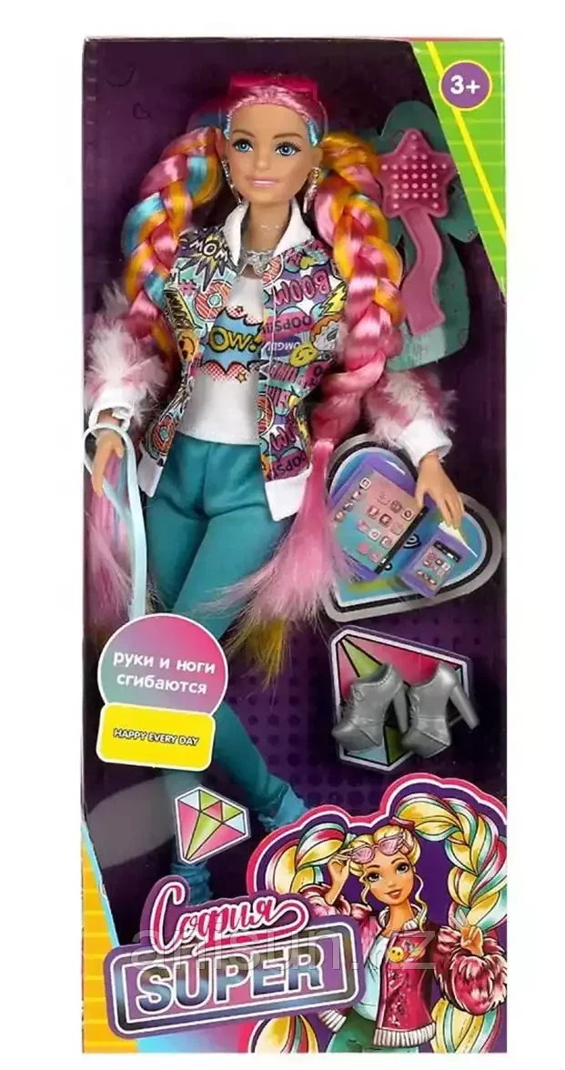 Кукла София SFS-04-BB-B Super Карапуз9 425Купить!тг. Маркетплейс: Satu.kz Ani-Sun Trade Доставка: по Казахстану ПожаловатьсяКукла «София Super» станет прекрасным подарком для вашей принцессы.Суперстильная София одета в модные зауженные брючки бирюзового цвета, белую футболку и ветровку с красочным принтом и меховыми рукава еще→ми, образ дополняют крупные серьги и ожерелье. Одежду и аксессуары легко снять и надеть. С такой модной куклой девочке будет интересно и весело играть: благодаря тому, что руки и ноги