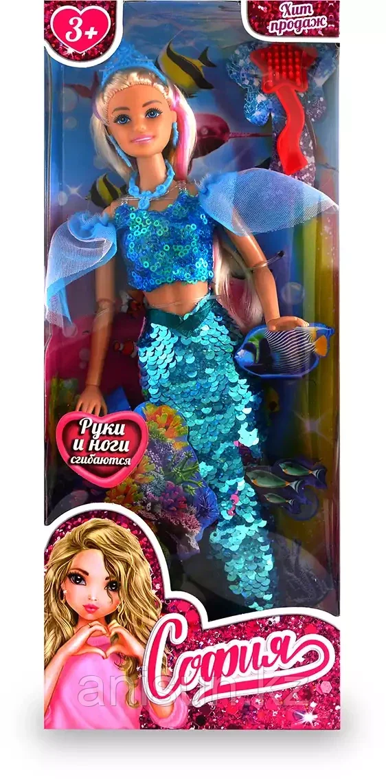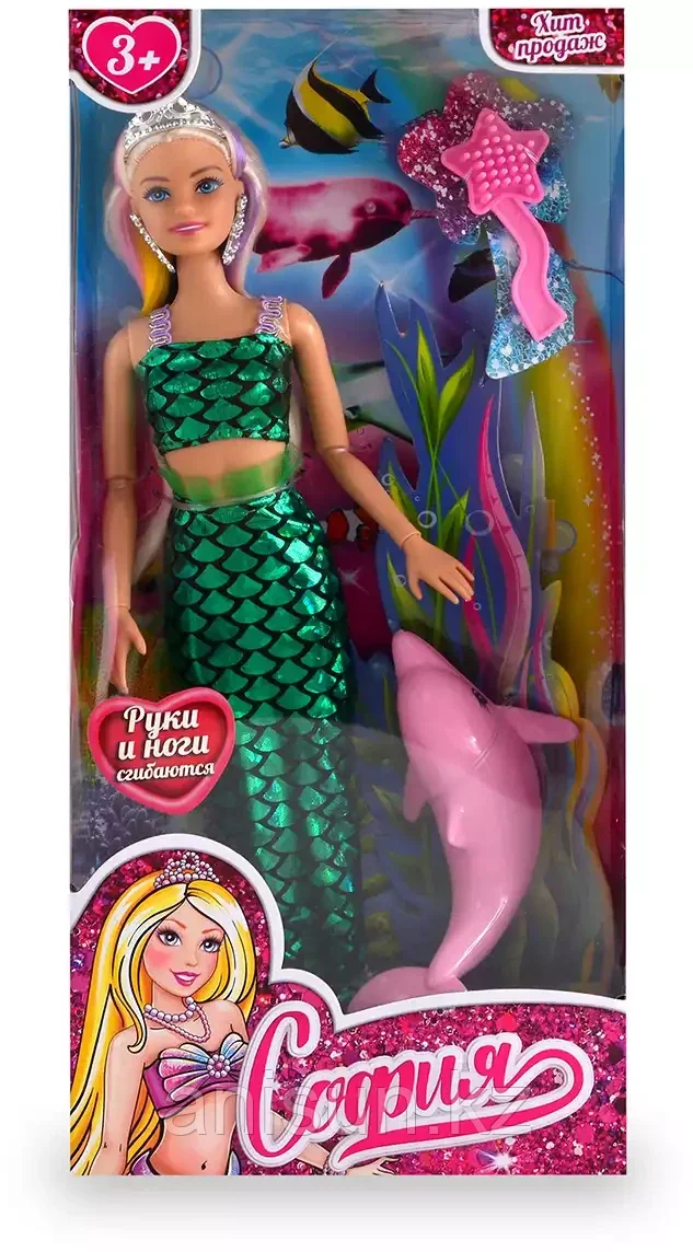 Кукла София 66001M-8-S-BB Русалка7 361Купить!тг. Маркетплейс: Satu.kz Ani-Sun Trade Доставка: по Казахстану ПожаловатьсяКукла София - Русалка ТМ «Карапуз» станет прекрасным подарком для вашей принцессы. Прекрасная русалка София одета в блестящий топ из пайеток, а также голубые серьги, колье и корону. Её пайеточный хвос еще→т красиво блестит и переливается. Одежду легко снять и надеть. С такой модной куклой девочке будет интересно и весело играть: благодаря тому, что руки и ноги куклы подвижны, им можно придать любое положение. У Софии длинные красивые волосы, которые хозяйка куклы может заплетать в разные причёски. Детально проработанный дизайн игрушки вдохновит девочку на новые игровые сюжеты.