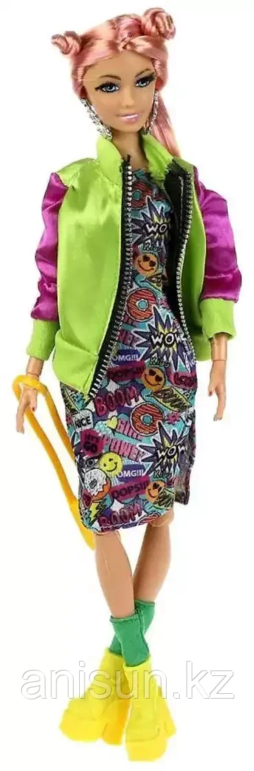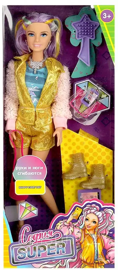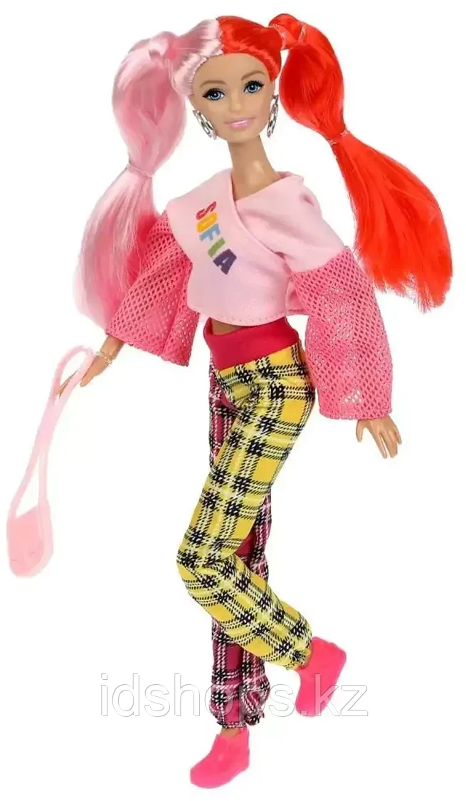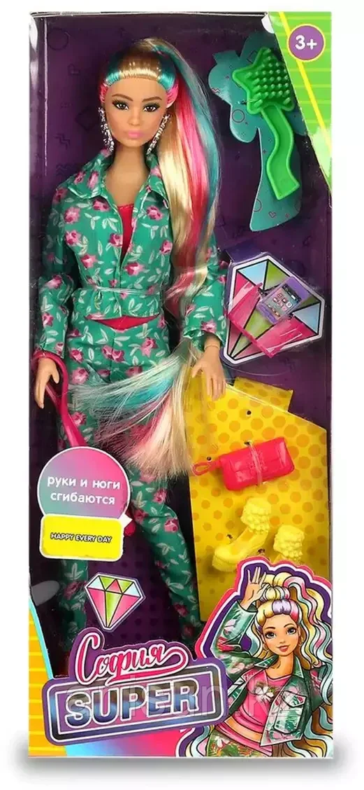 Кукла SFS-02-BB-B София с аксессуарами6 820Купить!тг. Маркетплейс: Satu.kz Ani-Sun Trade Доставка: по Казахстану ПожаловатьсяКукла София Super станет прекрасным подарком для вашей принцессы. Суперстильная София одета в розово-зелёный брючный костюм с цветочным принтом, образ дополняют модные серьги. Одежду и аксессуары легк еще→о снять и надеть. С такой модной куклой девочке будет интересно и весело играть: благодаря тому, что руки и ноги куклы подвижны, им можно придать любое положение. У Софии очень длинные красивые волосы с цветными прядями, которые хозяйка куклы сможет заплетать в разные причёски. Наличие дополнительных аксессуаров в наборе сделает игры с куклой более разнообразными и интересными. В комплекте: - София - сумочка - расчёска - клатч - телефон - очки - дополнительная пара обуви Рост куклы: 29 см.