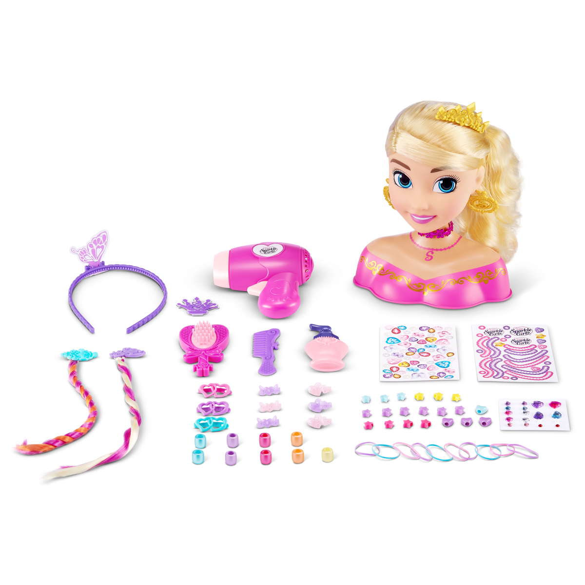 Sparkle Girlz: Игровой набор "Салон красоты"17 590Купить!тг.Marwin.kzДоставка: из АлматыПожаловатьсяZURU Sparkle Girlz Styling Princess включает в себя все необходимое для создания блестящего образа волос! Расчеши и уложи ее великолепные блестящие волосы и заверши образ блестящими аксессуарами. еще→Преобрази ее образ от королевского пучка до элегантных косичек с помощью инструмента для плетения. Используй фен и щетку, чтобы придать форму ее локонам, а с дополнительными прядями ты можешь добавить немного цвета! Ты даже можешь подарить себе королевское отношение, используя ее прекрасные аксессуары в своих волосах! Набор включает: - модель для причесок; - фен; - парикмахерские аксессуары: щетка, заколки, резинки, наклейки и др. Подходит для детей старше 3 лет.