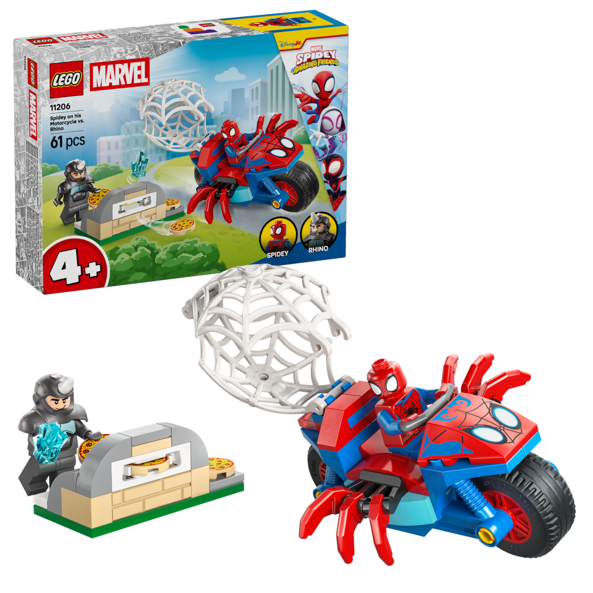 LEGO: Человек-паук на мотоцикле против Носорога Marvel 112067 290Купить!тг.Marwin.kzДоставка: из АлматыПожаловатьсяНабор «Человек-паук на мотоцикле против Носорога» (11206) для мальчиков и девочек в возрасте от 4 лет дарит детям возможность почувствовать себя настоящими супергероями. В наборе для сборки есть м еще→инифигурки Человека-паука и Носорога, а также мотоцикл в форме паука — это отличный способ помочь детям развить свои творческие навыки. Дети помогают Человеку-пауку отыскать украденный синий драгоценный камень, уклониться от летающей пиццы, выпущенной из печи Носорога, и поймать Носорога в гигантскую паутинную ловушку, которая крепится на мотоцикл. Этот набор для сборки создан специально для начинающих строителей и наполнен деталями, вдохновляющими детей на бесконечную творческую игру. Он станет…