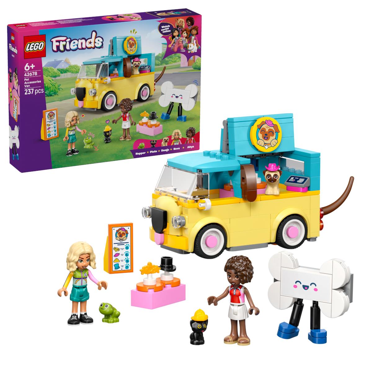 LEGO: Фургон для перевозки зоотоваров Friends 4267814 490Купить!тг.Marwin.kzДоставка: из АлматыПожаловатьсяИгрушечный набор для детей «Фургон с аксессуарами для животных» LEGO Friends (42678) отправит в полет фантазию юных любителей животных. Девочки и мальчики в возрасте от 6 лет смогут устроить весел еще→ые приключения, загружая фургон, демонстрируя аксессуары и устраивая показ мод для домашних животных. Этот детализированный набор для сборки вдохновляет на открытую игру, и здесь есть две мини-куколки, фигурки животных — котенка, собаки и лягушки — и милые аксессуары для питомцев. В наборе много забавных моментов — полюбуйтесь на фургон в форме мопса и посмотрите, как он виляет хвостом, когда проезжает мимо! Проявите творческий подход, помогая питомцам примерить разные головные уборы: шапку от дождя, ковбойскую …