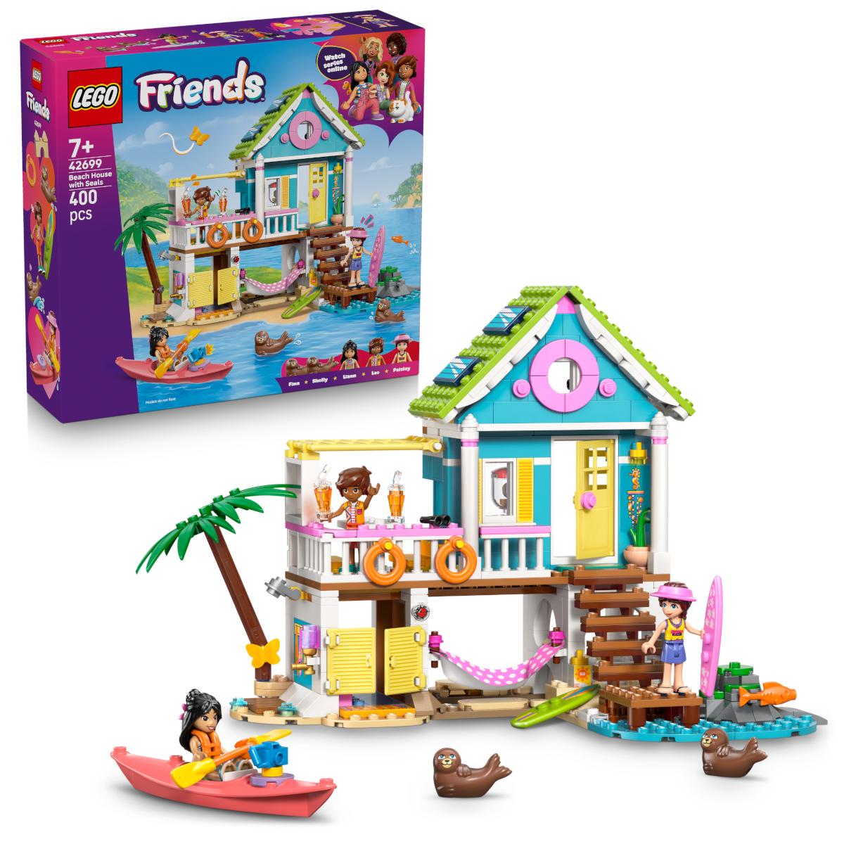 LEGO: Пляжный домик с тюленями Friends 4269940 490Купить!тг.Marwin.kzДоставка: из АлматыПожаловатьсяС этим увлектельным игровым набором девочки и мальчики в возрате от 7 лет смогут придумывать истории об отдыхе. В наборе для сборки «Пляжный домик с тюленями» LEGO Friends (42699) есть дом на еще→пляже, наполненный уютными деталями. Здесь есть все, чтобы разжечь воображение и вдохновить на игру, в том числе аппарат для смузи на кухне, спальная зона с тремя кроватями и милое крыльцо с настилом и креслом. Веселье продолжается и на улице: здесь на песке любят отдыхать тюлени. Можно даже найти зарытый клад! Этот детализированный набор вдохновляет на открытую игру с тремя мини-куколками и двумя тюленями. Среди забавных аксессуаров тут есть доска для серфинга, каяк, гамак, спасательный жилет, рац…