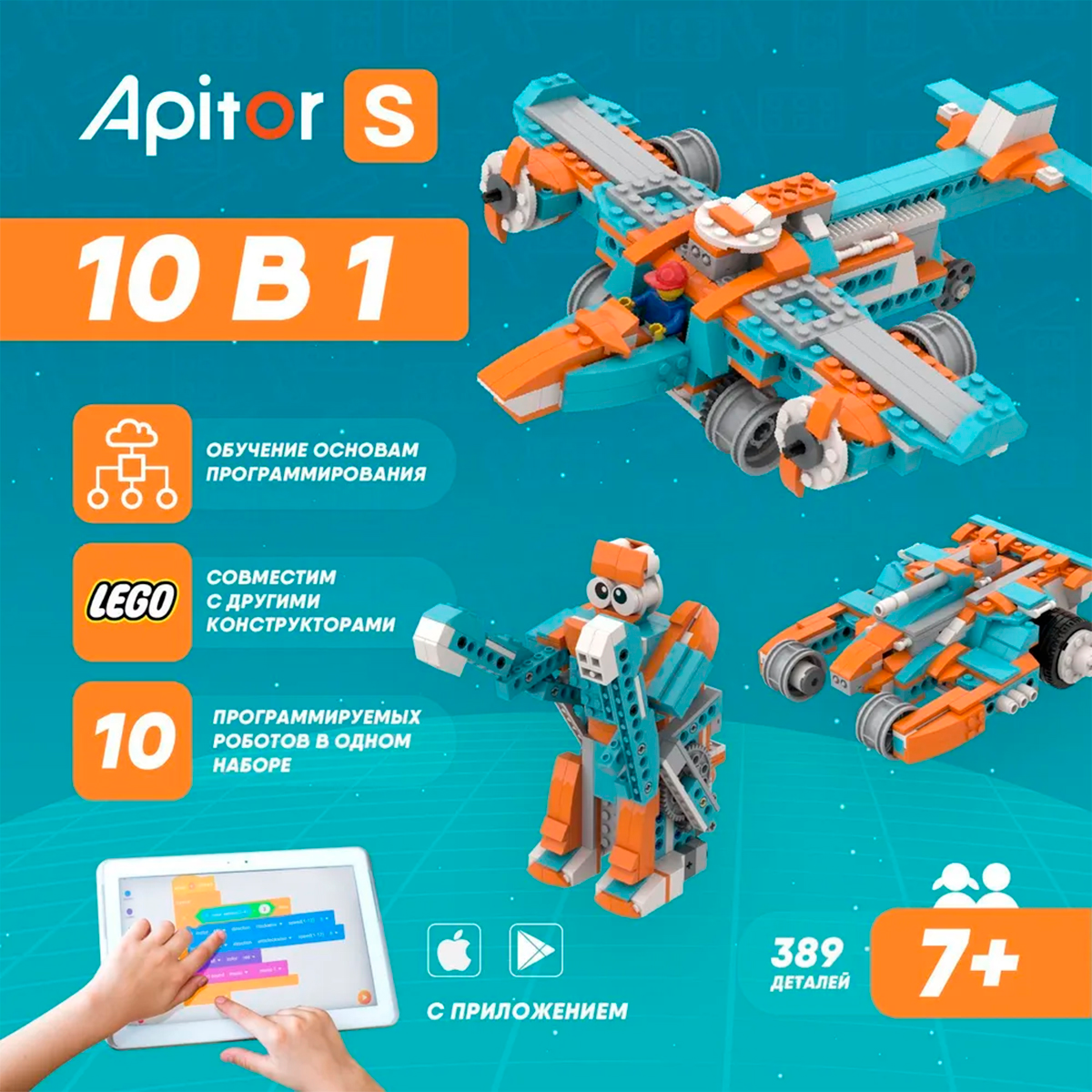 Apitor представляет обучающий развивающий набор Apitor Robot S 10 в 1 – программируемый детский конструктор, созданный по методологии обучения STEM. STEM – Science (Наука), Technology (Технология) еще→, Engineering (Инженерия), Mathematics (Математика). Добро пожаловать в мир будущего! Набор Robot S познакомит ребёнка 7, 8, 9, 10 лет с основами программирования в Scratch 3.0 и робототехникой, поможет развить пространственное мышление и воображение, вдохновит на творчество. А ещё он станет прекрасным подарком на день рождения, Новый год, 23 февраля и другие значимые события, как для девочки, так и для мальчика. Освойте скретч программирование с конструктором Apitor. Интересно будет даже родителям! Со…