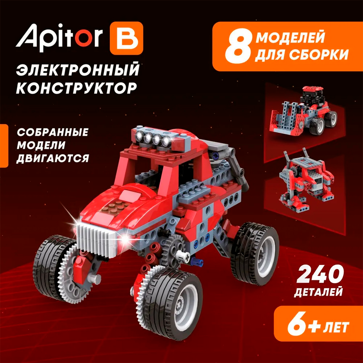 Apitor представляет обучающий развивающий набор Apitor Robot B 8 в 1 – электронный детский конструктор, созданный по методологии обучения STEM. STEM – Science (Наука), Technology (Технология), Eng еще→ineering (Инженерия), Mathematics (Математика). Приключения начинаются! Набор Robot B познакомит ребёнка 6, 7, 8, 9, 10 лет с робототехникой, порадует яркими брутальными цветами, поможет развить воображение, вдохновит на творчество. А ещё он станет прекрасным подарком на день рождения, Новый год, 23 февраля и другие значимые события, как для мальчика, так и для девочки. Интересно будет даже родителям! - Монстр-трак, бульдозер, птеродактиль, боевой робот и многое другое. Фигурки станут идеал…