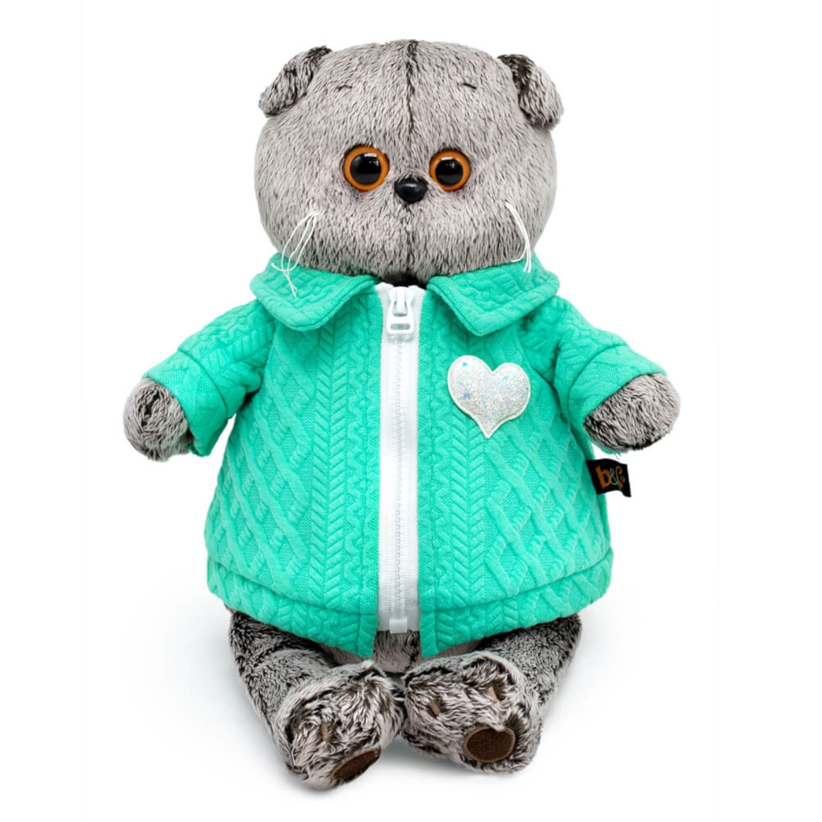 BASIK: Басик в куртке с сердечком 22 см14 090Купить!тг.Marwin.kzДоставка: из АлматыПожаловатьсяКот Басик - настоящий шопоголик, которого хлебом не корми - дай только прогуляться по магазинам! В один из чудесных дней ранней осени пушистый шотландец увидел в витрине симпатичный бомбер, выполнен еще→ный в насыщенном бирюзовом оттенке. Спереди его украшает белоснежная тракторная молния и такое же сердечко, которое очень красиво и загадочно мерцает на солнышке, поскольку выполнено из глиттерного материала. Стильный воротничок и имитация вязки на курточке удачно дополняют бомбер и делают эту вещичку поистине оригинальной. Кот Басик - известный персонаж и признанный любимец публики. Эта милая мягкая игрушка нравится не только детям, но и взрослым. Большая голова с выразительными круглыми глазка…