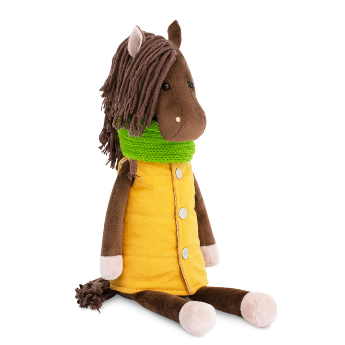 Orange: Конь Бруно 25 см10 590Купить!тг.Marwin.kzДоставка: из АлматыПожаловатьсяМягкий конь Бруно — это очаровательный персонаж, который станет любимым другом для вашего ребёнка или стильным аксессуаром в интерьере. Его коричневый мех и яркий образ создают атмосферу тепла, а уд еще→обный размер делает его идеальным спутником для игр дома, в детском саду или даже в путешествии. Особенности Игрушка выполнена в виде доброго коня с мягкой текстурой и стильной одеждой: жёлтой жилеткой и зелёным шарфом. Размер удобен для маленьких ручек и переноски, что делает её универсальным выбором для игр или декора. Одежда снимается, добавляя игривости и подчёркивая уникальность образа. Материал мягкий и приятный на ощупь, что создаёт ощущение тепла и комфорта. Добавьте радости в игру Конь…