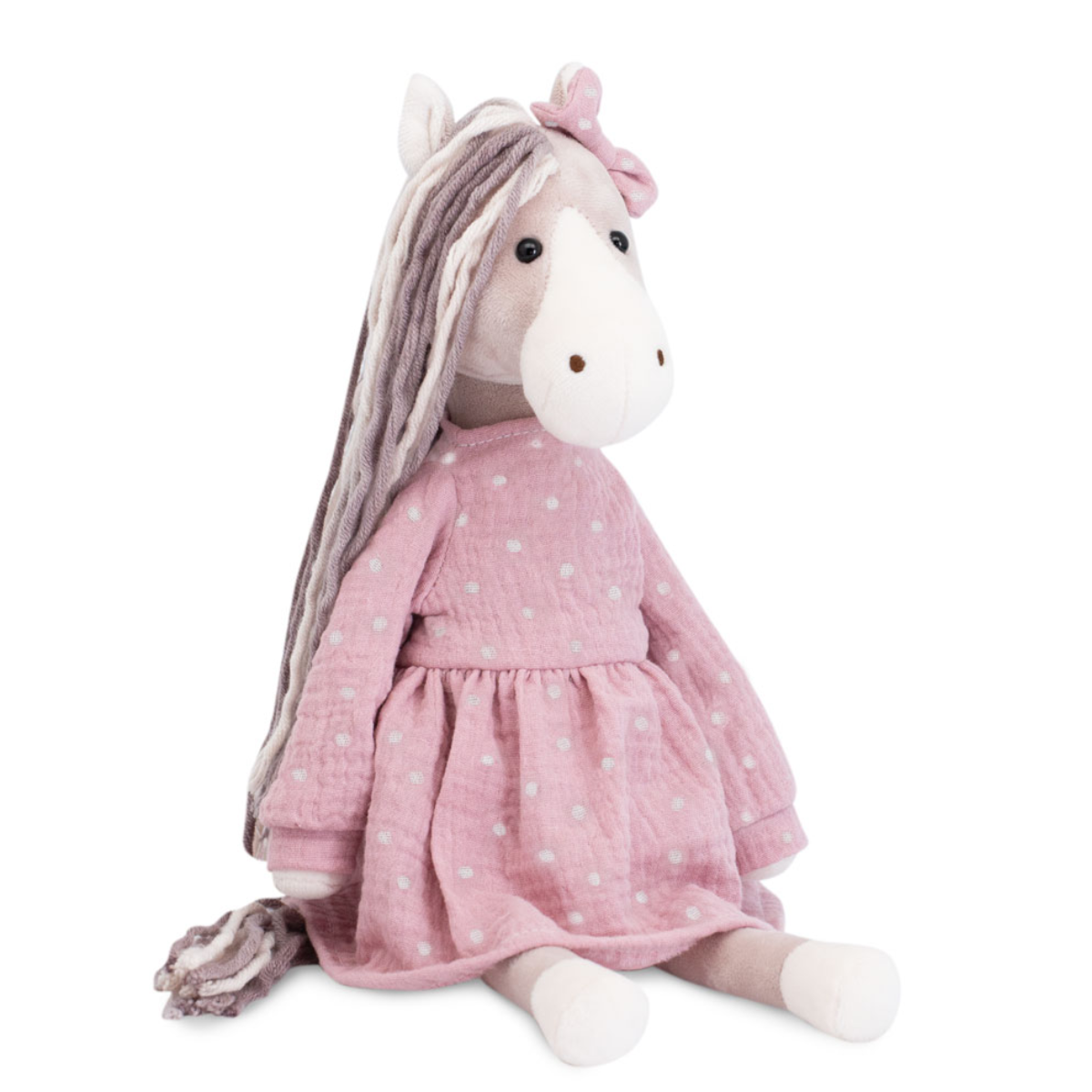 Orange: Лошадка Гретта 25 см9 590Купить!тг.Marwin.kzДоставка: из АлматыПожаловатьсяМягкая лошадка Гретта — это очаровательный персонаж, который станет любимым другом для вашей дочери или стильным аксессуаром в интерьере. Её бежевый мех и уютная зимняя одежда создают атмосферу тепл еще→а и уюта, а компактный размер делает её идеальным спутником для игр дома, в детском саду или даже в путешествии. Особенности Игрушка выполнена в виде милой лошадки с мягкой текстурой искусственного меха и стильной одеждой: шарфиком и гетрами. Размер удобен для маленьких ручек и переноски, что делает её универсальным выбором для игр или декора. Одежда добавляет игривости и делает образ уникальным и запоминающимся. Материал мягкий и приятный на ощупь, что создаёт ощущение тепла и комфорта. Д…