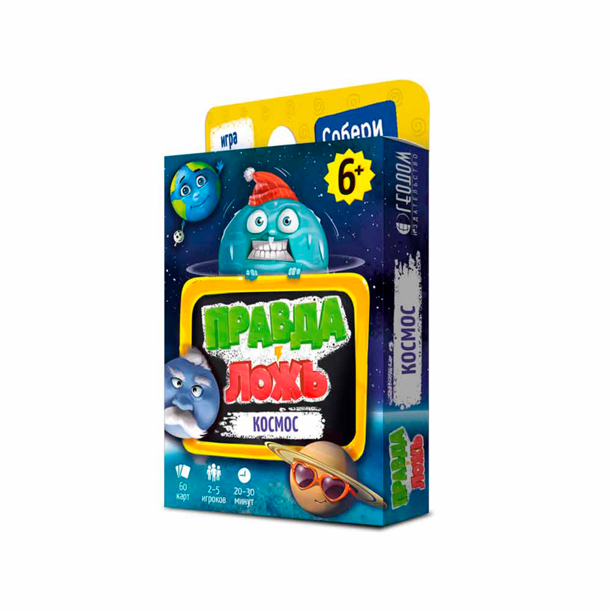 Геодом: Правда-ложь. Космос3 990Купить!тг.Marwin.kzДоставка: из АлматыПожаловатьсяНастольная игра «Правда-ложь. Космос» от бренда Геодом — увлекательное путешествие по неизведанным просторам Вселенной. Игра познакомит детей с удивительными фактами о планетах, звёздах, космических м еще→иссиях и других тайнах космоса. Участникам предстоит решить, какие утверждения соответствуют действительности, а какие — вымышлены. Такая форма игрового обучения расширяет кругозор, способствует развитию логического и стратегического мышления, а также помогает детям развивать коммуникативные навыки и умение принимать решения вместе. Яркие иллюстрации делают игровой процесс ещё более интересным и наглядным. Комплектация: 50 карточек с фактами, 10 карточек ответов, правила игры. Характеристики: - Коли…