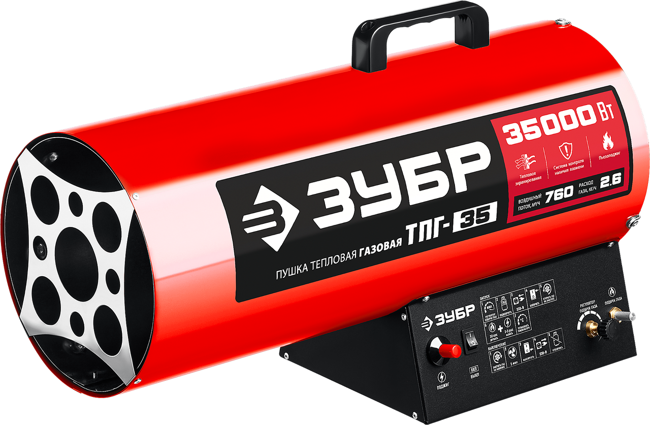 Пушка тепловая электрическая, ЗУБР, МАСТЕР, ЗТП-5000_м2 Надежный и экономичный обогреватель для квартиры, загородного дома. Большая площадь ТЭНов и эффективный обдув способствуют более быстрому нагреву помещения. Цилиндрический корпус обеспечивает ламинарный поток воздуха, что улучшает обдув ТЭНов, снижает нагрев корпуса и увеличивает выход тепла из изделия. Конструктивные меры