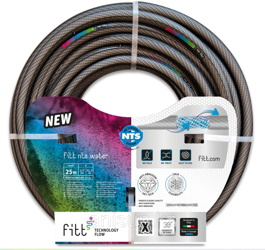 Садовый шланг для полива FITT NTS WTR 5/8"x50М с распылителем серый (004)159 821Купить!тг. Маркетплейс: Satu.kz Ani-Sun Trade Доставка: по Казахстану ПожаловатьсяСадовый шланг серый