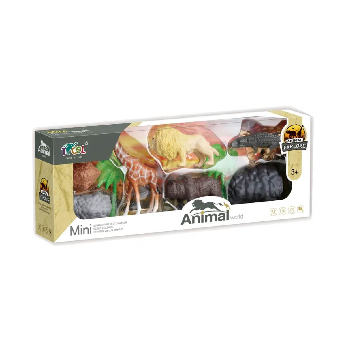 Nature Explore: Animal. Фигурки животных - "Мир диких животных", 8 шт B Style4 990Купить!тг.Marwin.kzДоставка: из АлматыПожаловатьсяС этим набором фигурок вашему ребенку будет интересно изучать животных! Малыш сможет собрать свою коллекцию и обыгрывать различные ситуации. Игрушки исполнены с высоким уровнем детализации, тщательн еще→о передавая все отличительные особенности животного с рельефной шкурой и тщательной росписью. Новые фигурки станут компаньонами в сюжетных играх или украшением домашней коллекции фигурок юного натуралиста, помогая развивать воображение и моторику рук. Игровой набор изготовлен из качественного материала, который абсолютно безопасен для детей. Изготовлено: пластмасса, полимерные материалы. В наборе: 8 фигурок животных, муляж камня - 6 шт, муляж дерева - 4 шт.