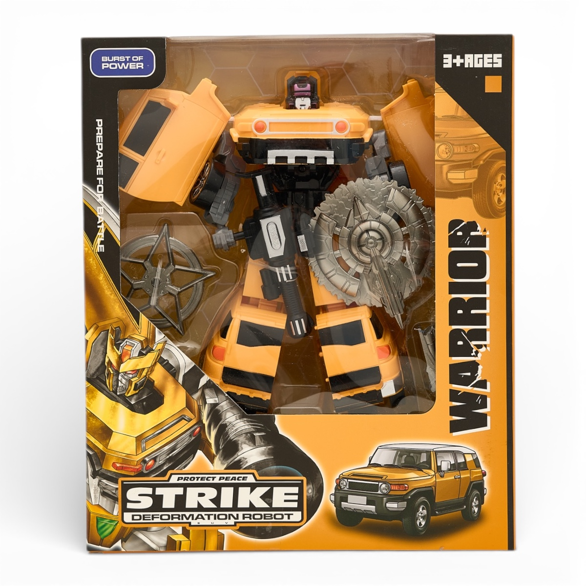 Changerobot: Робот-трансформер Strike Warrior - Желтый5 590Купить!тг.Marwin.kzДоставка: из АлматыПожаловатьсяChangerobot: Робот-трансформер Strike Warrior — это мощная и зрелищная игрушка для детей, увлекающихся роботами и боевой техникой. Модель легко трансформируется из грозного боевого робота в военный еще→транспорт и обратно, позволяя разыгрывать динамичные сражения и тактические миссии. Прочная конструкция из качественного пластика и надежные крепления обеспечивают долговечность даже при активной игре. Детализированный дизайн в военном стиле, подвижные руки, ноги и элементы корпуса делают процесс трансформации увлекательным и понятным. Strike Warrior способствует развитию воображения, логического мышления и мелкой моторики, помогает создавать собственные игровые сценарии и командные операции. Компактный раз…
