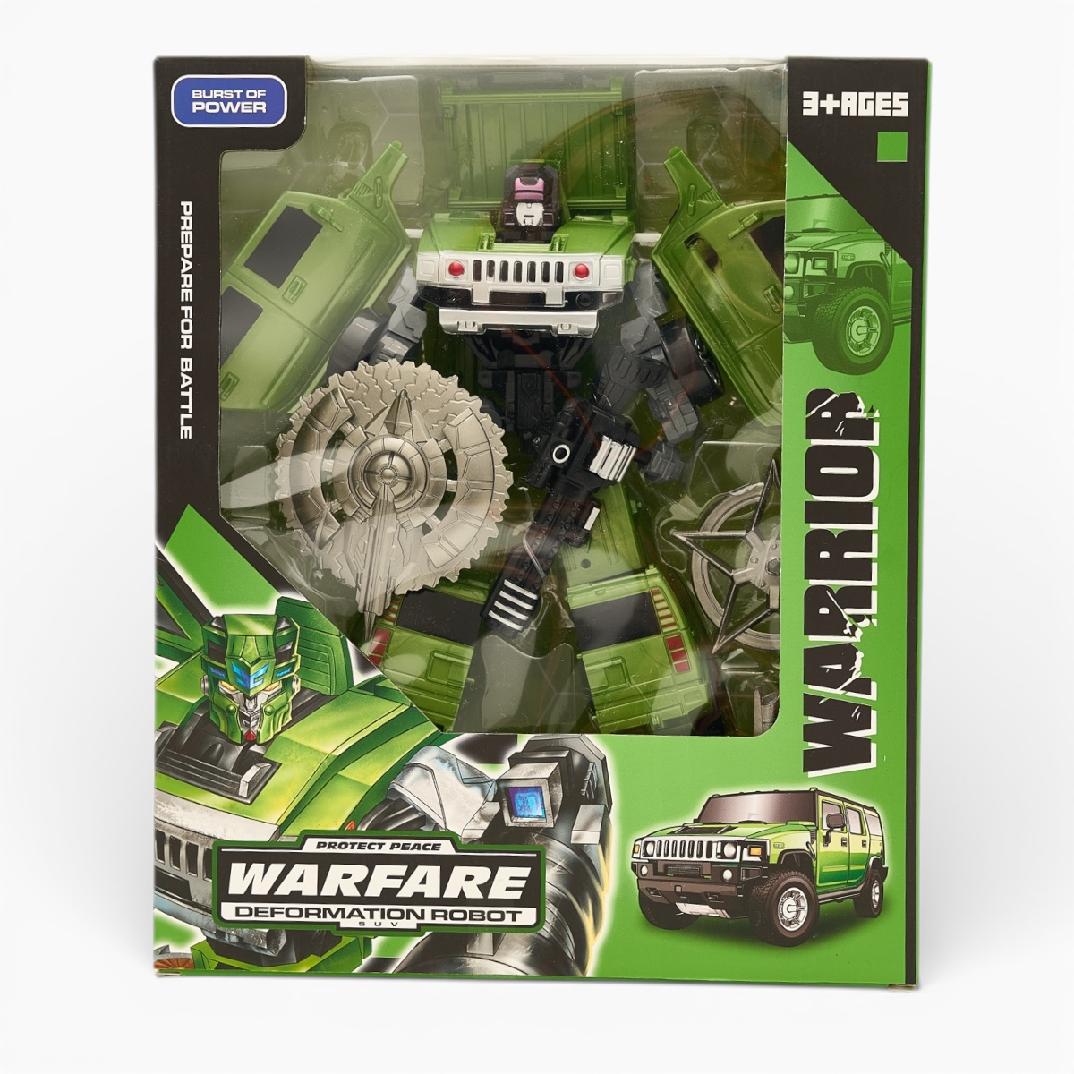 Changerobot: Робот-трансформер Warfare - Зеленый5 590Купить!тг.Marwin.kzДоставка: из АлматыПожаловатьсяChangerobot: Робот-трансформер Warfare — это впечатляющая игрушка для детей, увлекающихся боевой техникой, роботами и динамичными сюжетами. Модель легко трансформируется из мощного боевого робота в еще→военный транспорт и обратно, открывая возможности для захватывающих миссий и тактических операций. Прочная конструкция из качественного пластика и надежные соединения обеспечивают долгий срок службы даже при активной игре. Детализированный дизайн в военном стиле, подвижные руки, ноги и элементы корпуса делают трансформацию наглядной и интересной. Warfare способствует развитию воображения, логического мышления и мелкой моторики, помогает ребенку придумывать собственные сценарии сражений и командных…