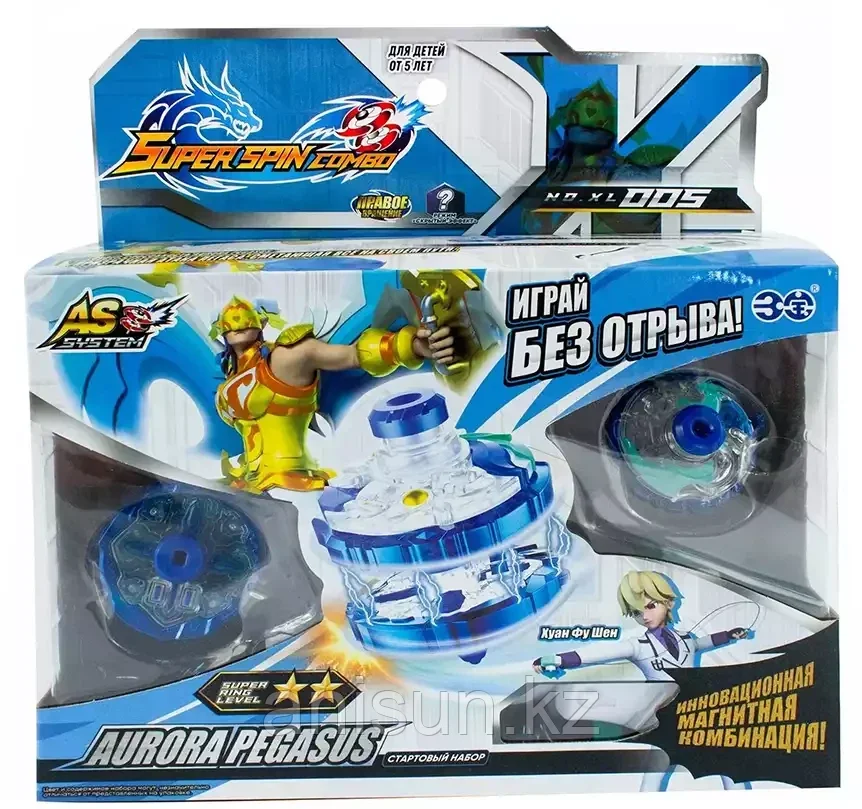 Игровой набор Super Spin Combo Aurora Pegasus волчок с пусковым устройством UNT30700511 663Купить!тг. Маркетплейс: Satu.kz Ani-Sun Trade Доставка: по Казахстану ПожаловатьсяНе упусти свой шанс - выиграй битву! Соедини пусковое устройство с основным элементом Супер Спин, придай мощность вращению, резко нажми на кнопку, выпустив элемент. Поединок продолжается! Раскрути ком еще→бо-кольцо для большей маневренности комбо-волчка, соединив вновь с основным элементом во время вращения на арене, и стань победителем турнира. В наборе используется инновационная