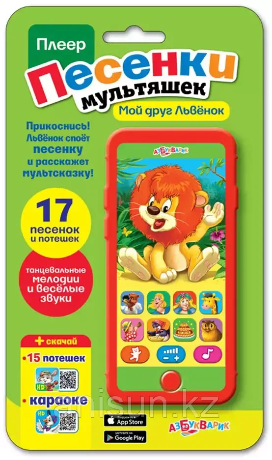 Игрушка музыкальная 4630014080987 Мультиплеер Мой друг Львенок н/к2 425Купить!тг. Маркетплейс: Satu.kz Ani-Sun Trade Доставка: по Казахстану ПожаловатьсяИнтерактивный плеер-смартфончик с любимыми мультяшками! Прикоснись к Львёнку, и он расскажет сказки и споёт песенки. 17 песенок, танцевальные мелодии, забавные звуки и весёлый телефончик – в каждой игрушке.