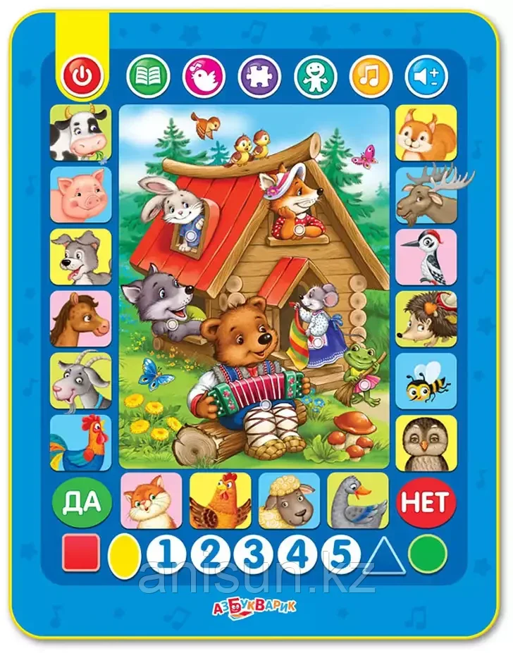 Планшетик Умная сказочка (Планшет) 1842 Азбукварик3 926Купить!тг. Маркетплейс: Satu.kz ID Shopps.kz - Оптово-розничный Склад Доставка: по Казахстану ПожаловатьсяС новым интерактивным планшетиком дети не только послушают любимые сказки, но и выучат цифры, формы и цвета, познакомятся с животными. В режиме «Умная сказка» ребёнок будет выполнять задания по сказке еще→«Теремок» и сможет проверить свои знания. В планшетике собрано 5 народных сказок («Теремок», «Репка», «Заюшкина избушка», «Колобок», «Петушок и бобовое зёрнышко»), 15 стихов о