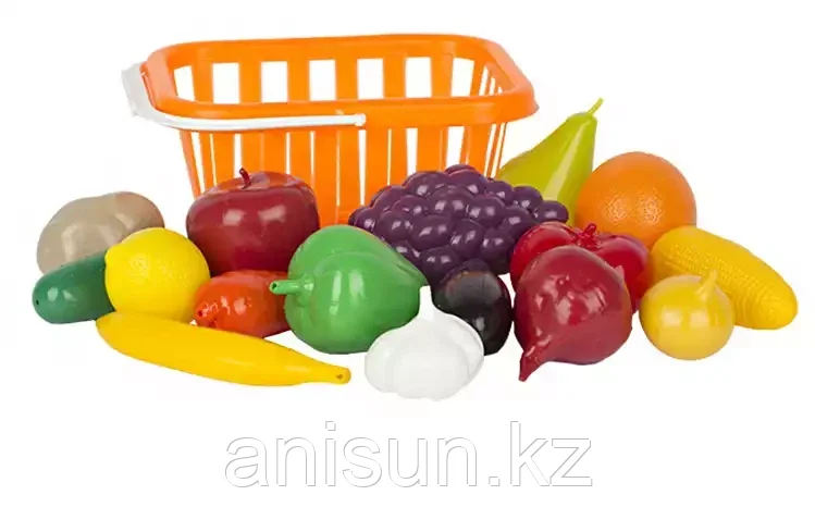 Набор Фрукты и овощи в корзине 17пред. У782 Совтехстром5 538Купить!тг. Маркетплейс: Satu.kz ID Shopps.kz - Оптово-розничный Склад Доставка: по Казахстану ПожаловатьсяКомплектация:корзинка, виноград, лимон, апельсин, банан, груша, яблоко, огурец, перец,морковь, свекла, кукуруза, картофель, баклажан, помидор, лук, чеснок.Игровой набор «Фрукты и овощи» — набор из пла еще→стмассы. Для маленьких детей — это отличная возможность в игровой форме познакомиться с фруктами и овощами, изучая название, форму и их цвет. Детям же постарше они будут незаменимы в