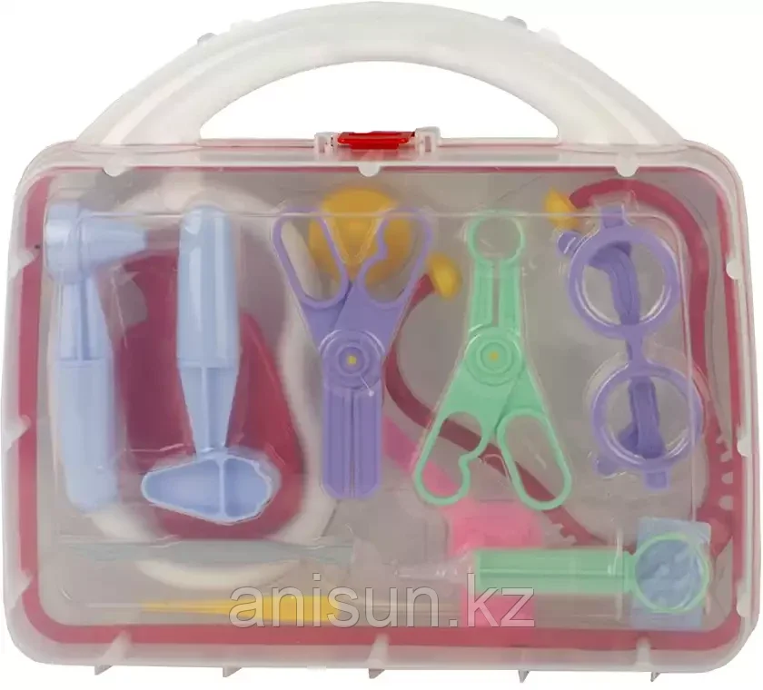 Набор Доктор в чемодане У356 Совтехстром3 674Купить!тг. Маркетплейс: Satu.kz Ani-Sun Trade Доставка: по Казахстану ПожаловатьсяКомплектация: чемодан, грелка, фонендоскоп, лопаточка окулиста, ванночка, таблетки 2шт, очки, шприц, щипцы, ножницы, ларингоскоп, молоток, скальпель, термометр, Игровой набор доктора включает в себя п еще→олный набор необходимых аксессуаров для маленького врача, которые создадут увлекательную атмосферу игры.