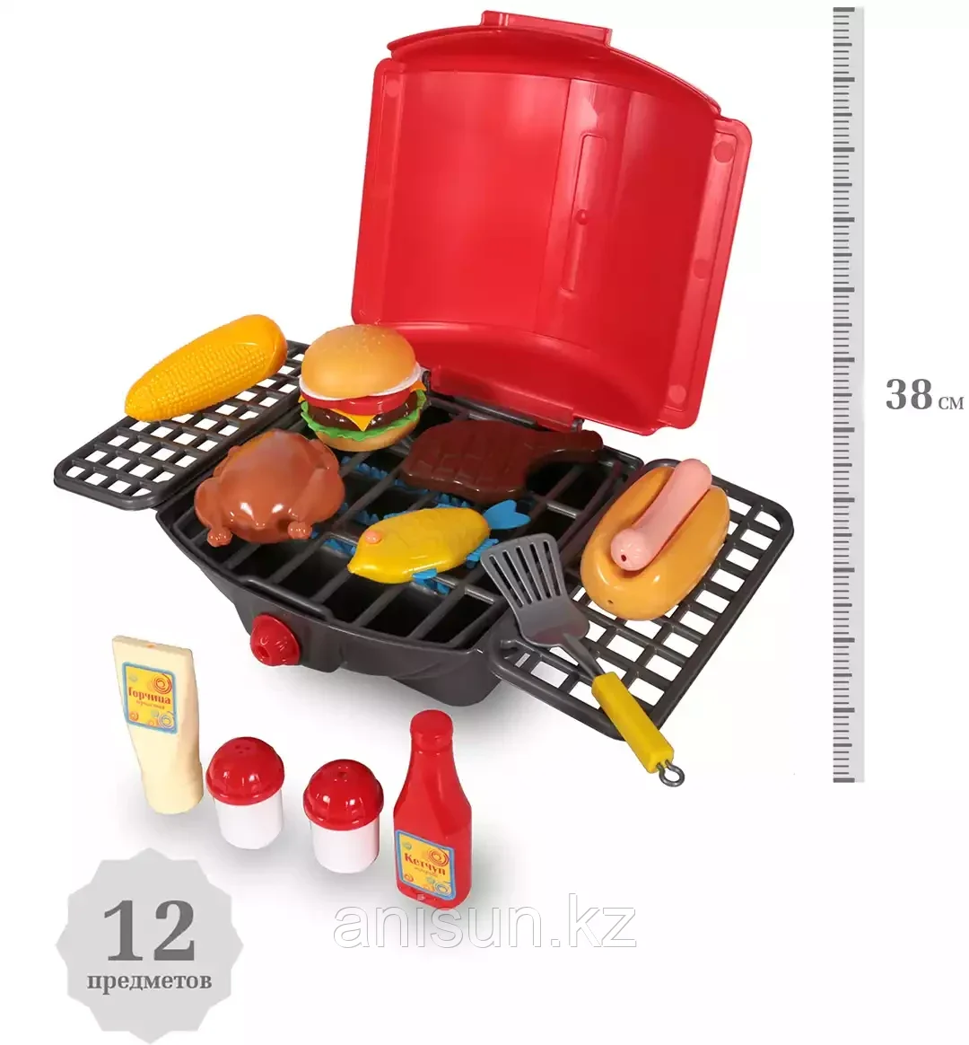 Игровой набор Барбекю У350 Совтехстром6 533Купить!тг. Маркетплейс: Satu.kz Ani-Sun Trade Доставка: по Казахстану ПожаловатьсяСостав: барбекю, стейк, хот дог, бургер, рыба, кукуруза, курица, кетчуп, горчица, солонка, перечница, лопатка.