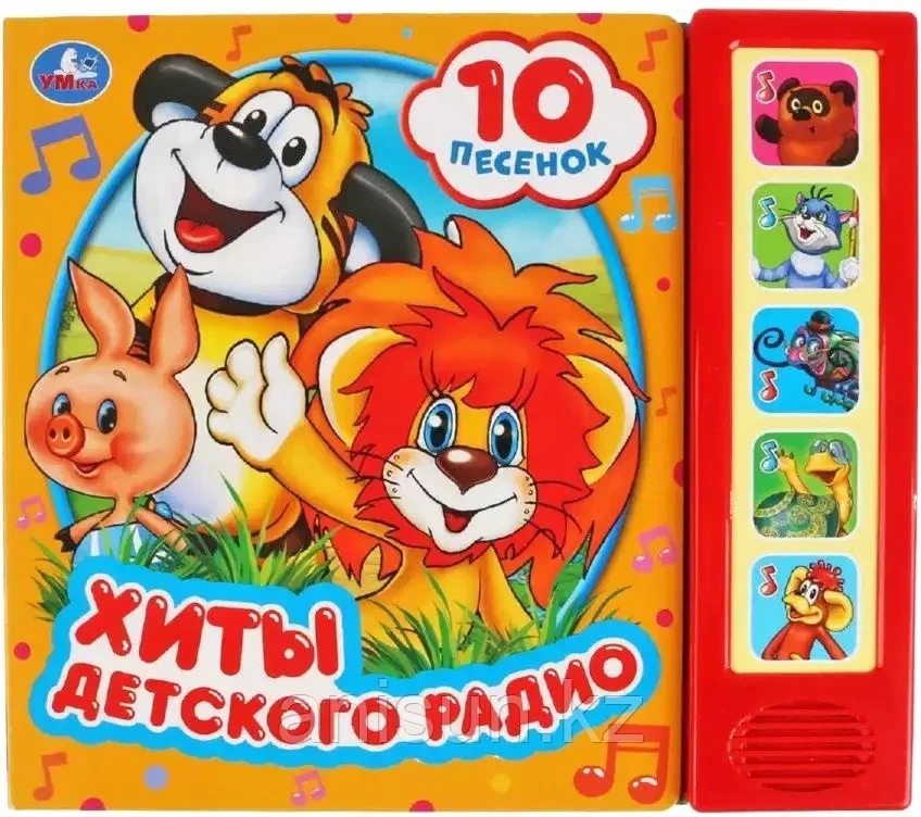 Книга Говорящая Хиты детского радио Экран 1 кнопка с 10 песенками 9785506070993 Умка5 204Купить!тг. Маркетплейс: Satu.kz Ani-Sun Trade Доставка: по Казахстану ПожаловатьсяМузыкальная книга «Хиты детского радио» ТМ «УМка» – отличный подарок для маленьких поклонников мультфильмов студии «Экран»: - 1 красочная звуковая кнопка - 10 песенок из м/ф (фрагменты): «Прекрасное д еще→алеко», «Песня друзей», «Облака», «Улыбка», «Если добрый ты», «Неприятность эту мы переживём», «Кручу педали», «Хвост за хвост», «Крылатые качели», «По дороге с облаками» - тексты