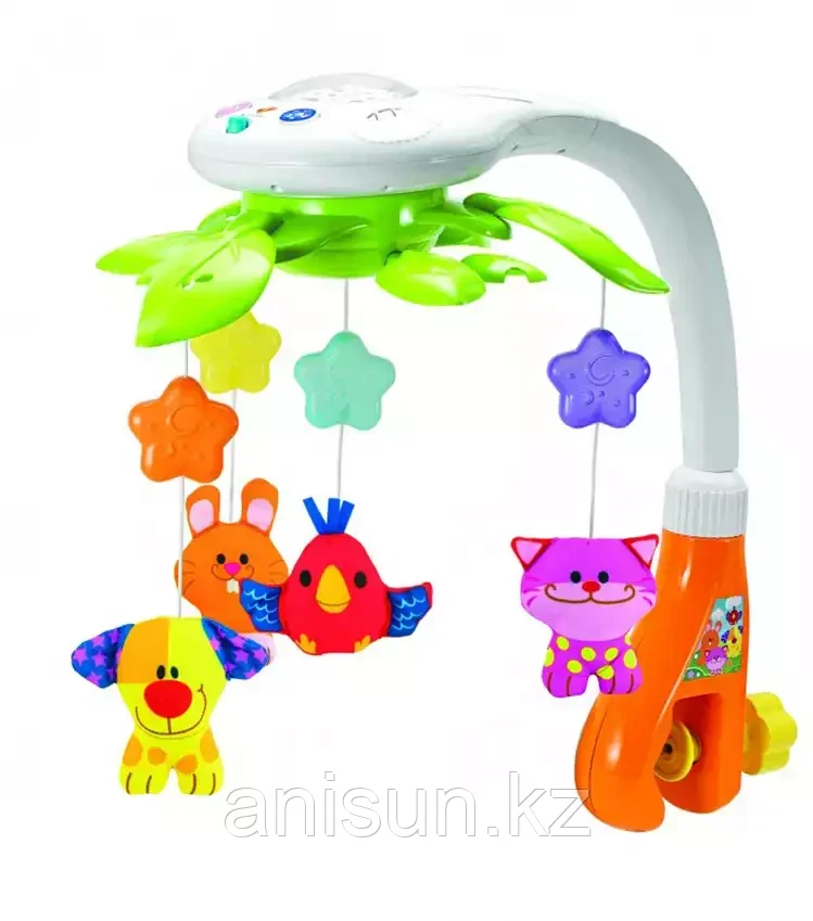 Мобиль 000845 в кроватку18 851Купить!тг. Маркетплейс: Satu.kz Ani-Sun Trade Доставка: по Казахстану ПожаловатьсяДетский музыкальный мобиль со световым проектором, помогающим увлечь ребенка. Мягкий свет и успокаивающая музыка облегчают засыпание. Вращающиеся игрушки концентрируют внимание малыша, а яркие цвета и еще→грушек стимулируют зрение. В комплект входят 4 мягкие игрушки: зайчик, птичка, собачка и котенок, а также 4 пластиковые звездочки и зеленые листочки. Удобная панель управления